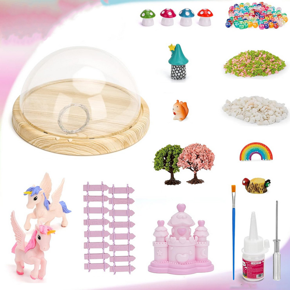 w Установить миниатюрные модели пейзажей, такие как ствол дерева, замок, белка, радуга и т. Д. Все детали сделаны из зеленого, здорового и экологически чистые материалы, и мягкий источник светодиодного света Это не повредит глазам детей в темноте. Свет и легко носить, Все эти наборы просты в установке, подходящий для детей в Возраст 6-12.
