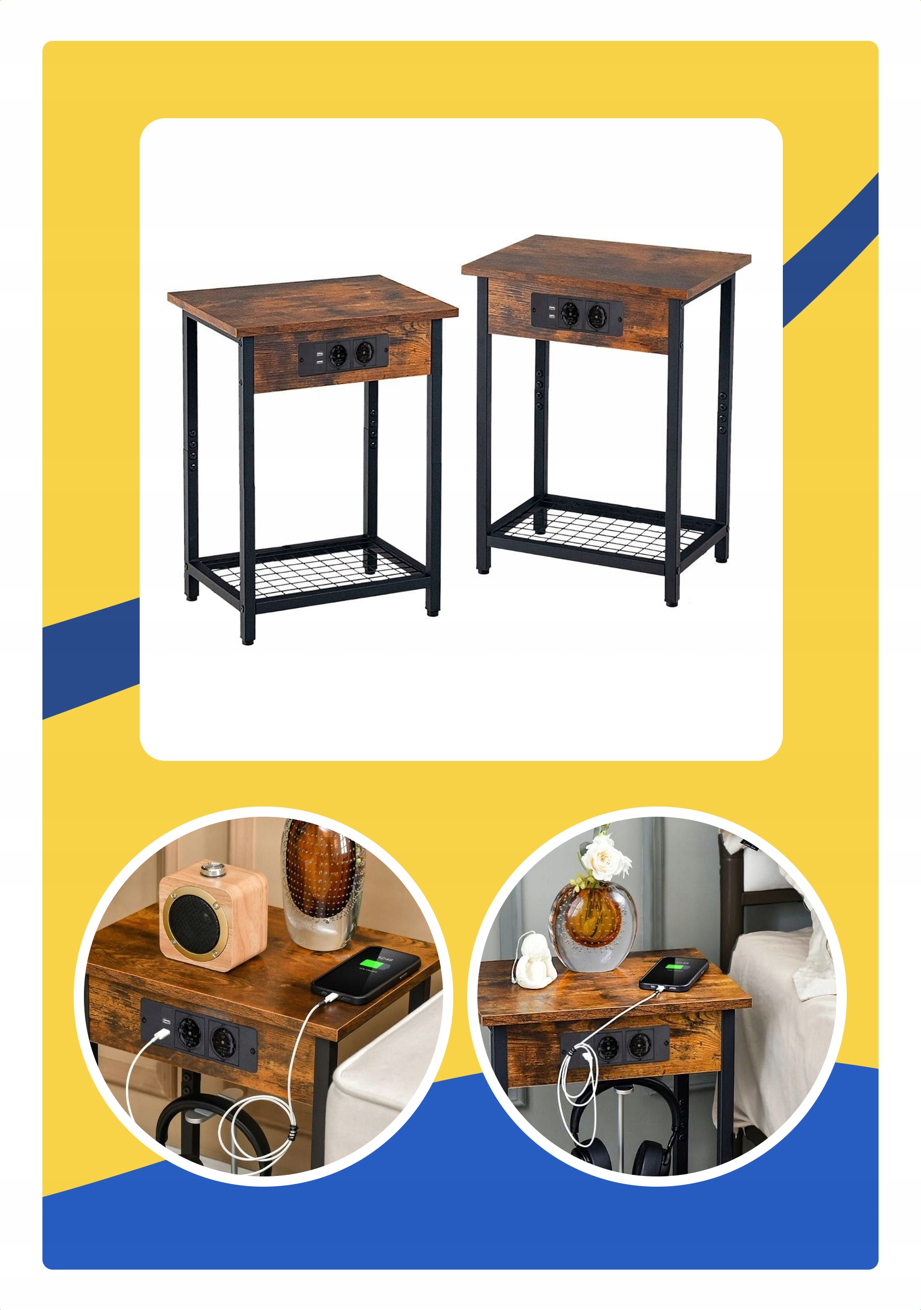 Ночной стол набор 2 деревянного прикроватного настольного турнира с зарядной станцией