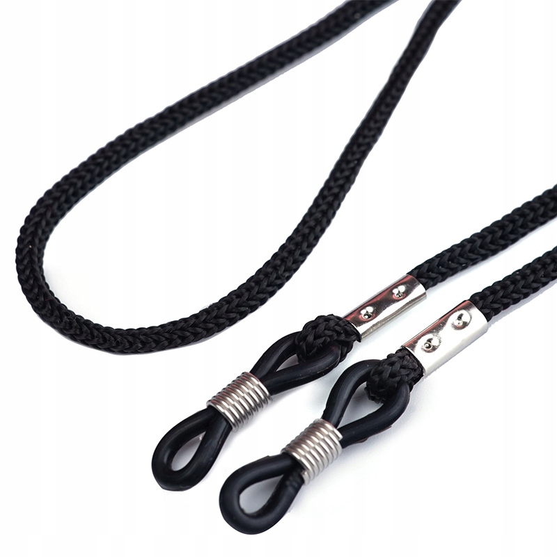 - На шнурке имеются гибкие силиконовые наконечники с металлическими пружинами, поэтому вы можете легко прикрепить шнурок к очкам, не повреждая оправу