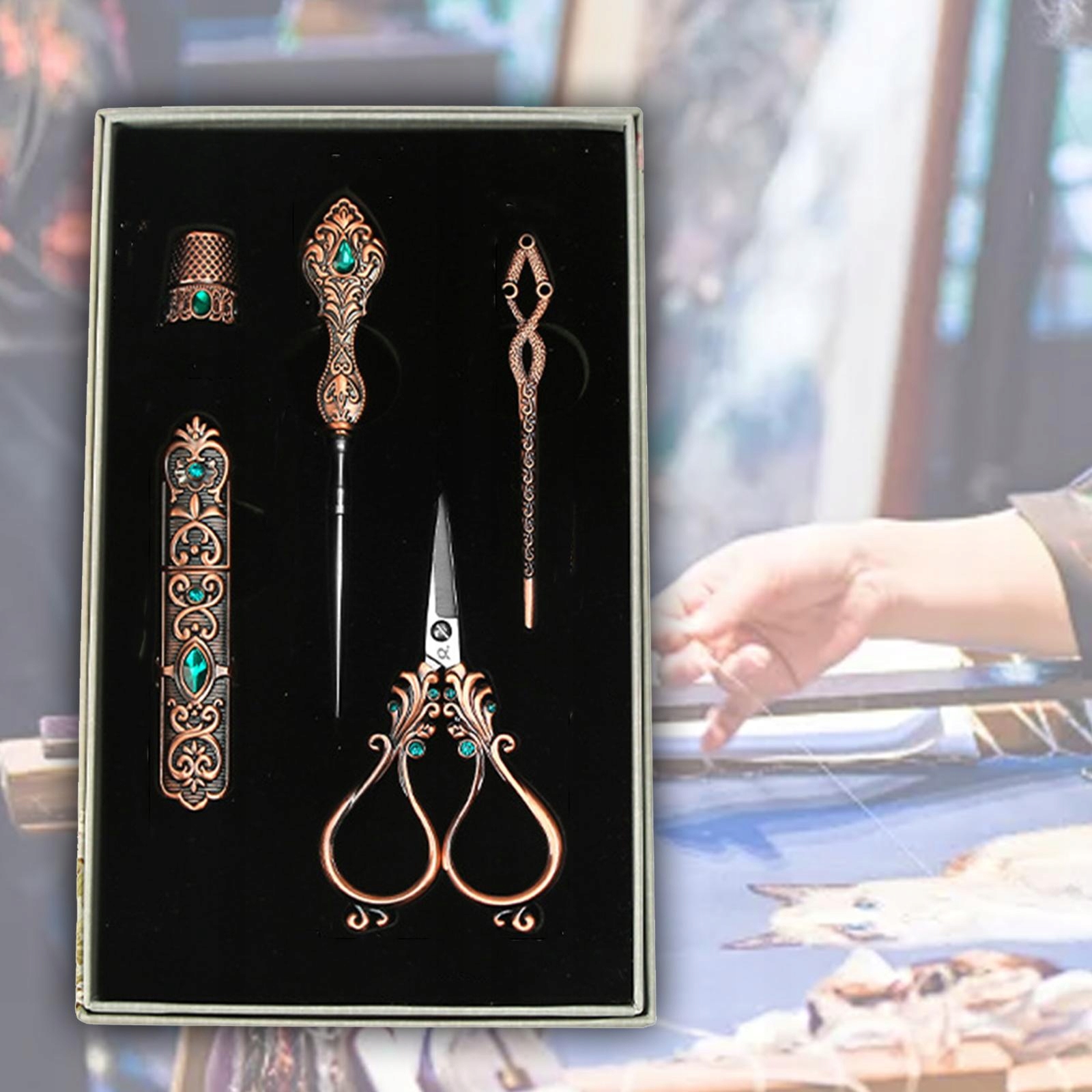 [European Vintage]: ножницы в этом наборе были разработаны в европейском винтажном стиле, который добавляет элегантный акцент к вашим инструментам для шитья.