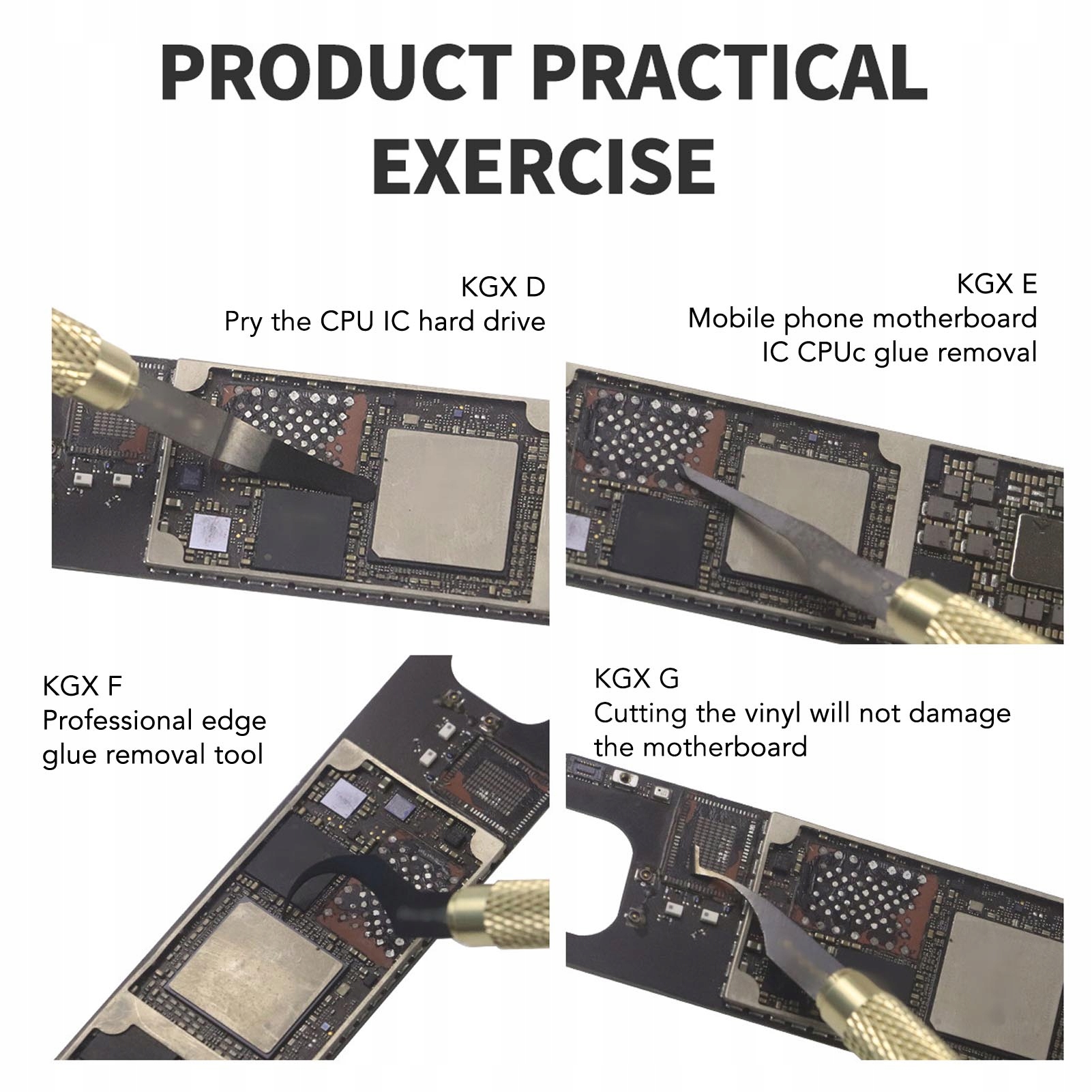 1. Универсальное удаление клея: набор универсальных ножей специально разработан для ремонта материнских плат iPhone. Эффективно удаляет клей и твердую резину, облегчая ремонт.