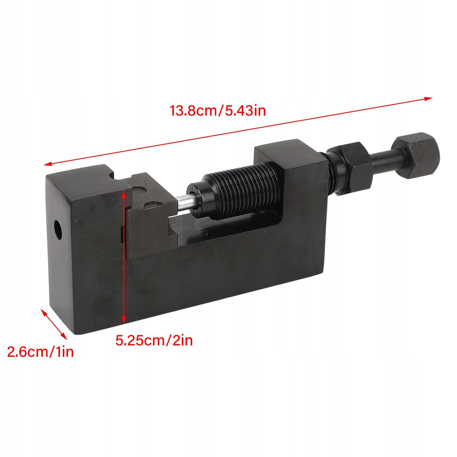 Особенность:1. Универсальная совместимость с цепями: этот комплект прерывателей цепей рассчитан на давление, разрыв и заклепки Standard 520, 525 и 530, включая кольцевые цепи. С помощью этого инструмента вы сможете удобно и эффективно работать с цепями многих размеров.