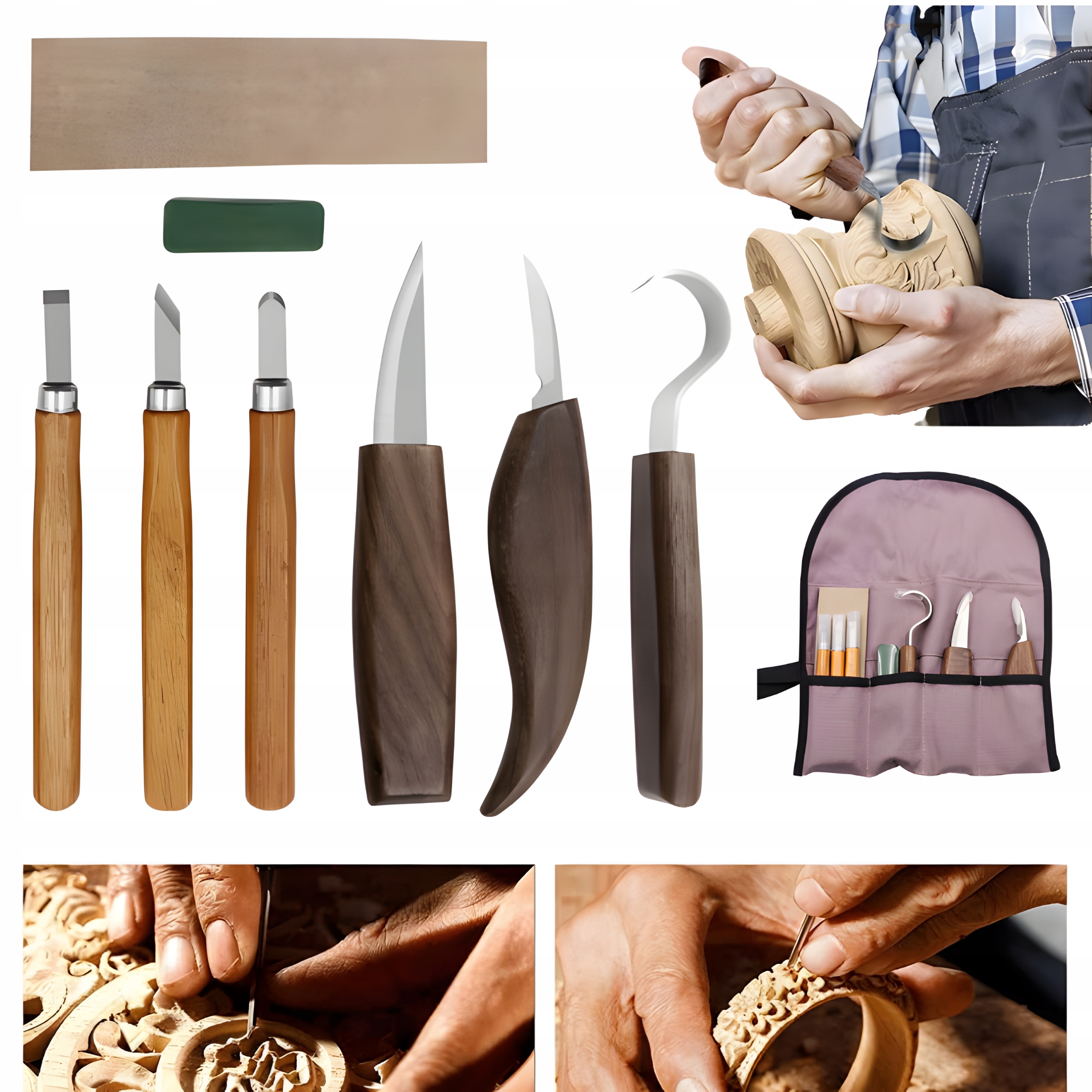 ✔️ Превосходное качество материала: Инструменты для резьбы изготовлены из стали высочайшего качества, ценимой плотниками за остроту, прочность, зернистость и цвет.