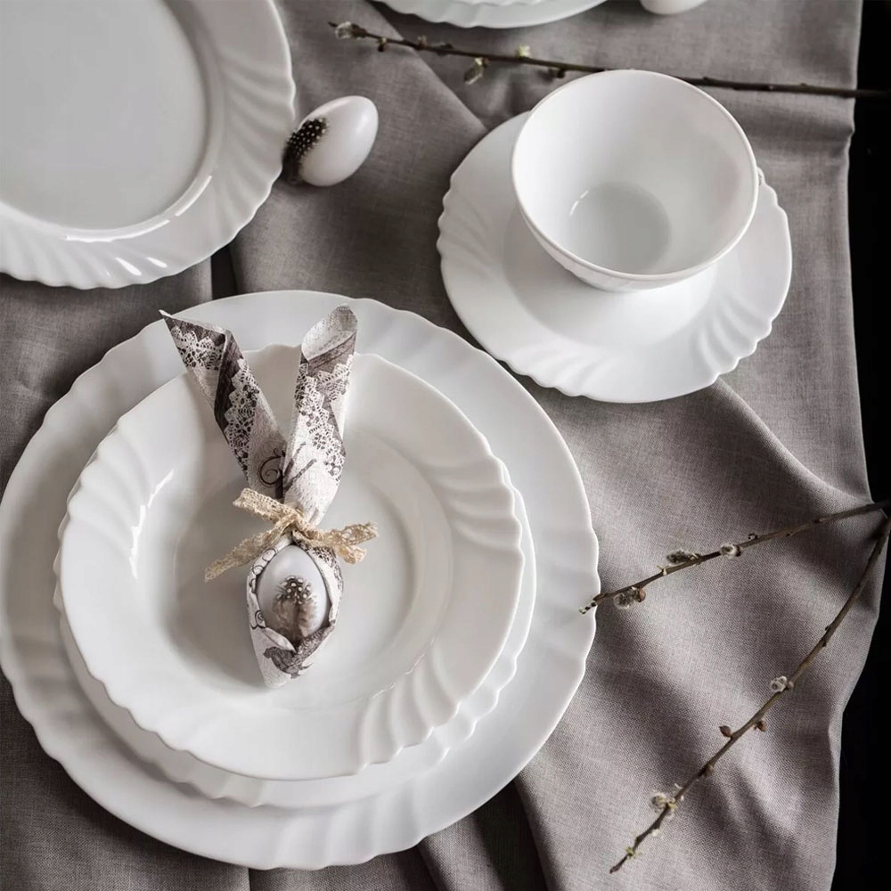 Пластины изготовлены из специального опалового стекла, которое в 5 раз прочнее, чем обычное закаленное стекло, и в 3 раза прочнее фарфора. Благодаря этому вы можете быть уверены, что посуда прослужит вам долго!!