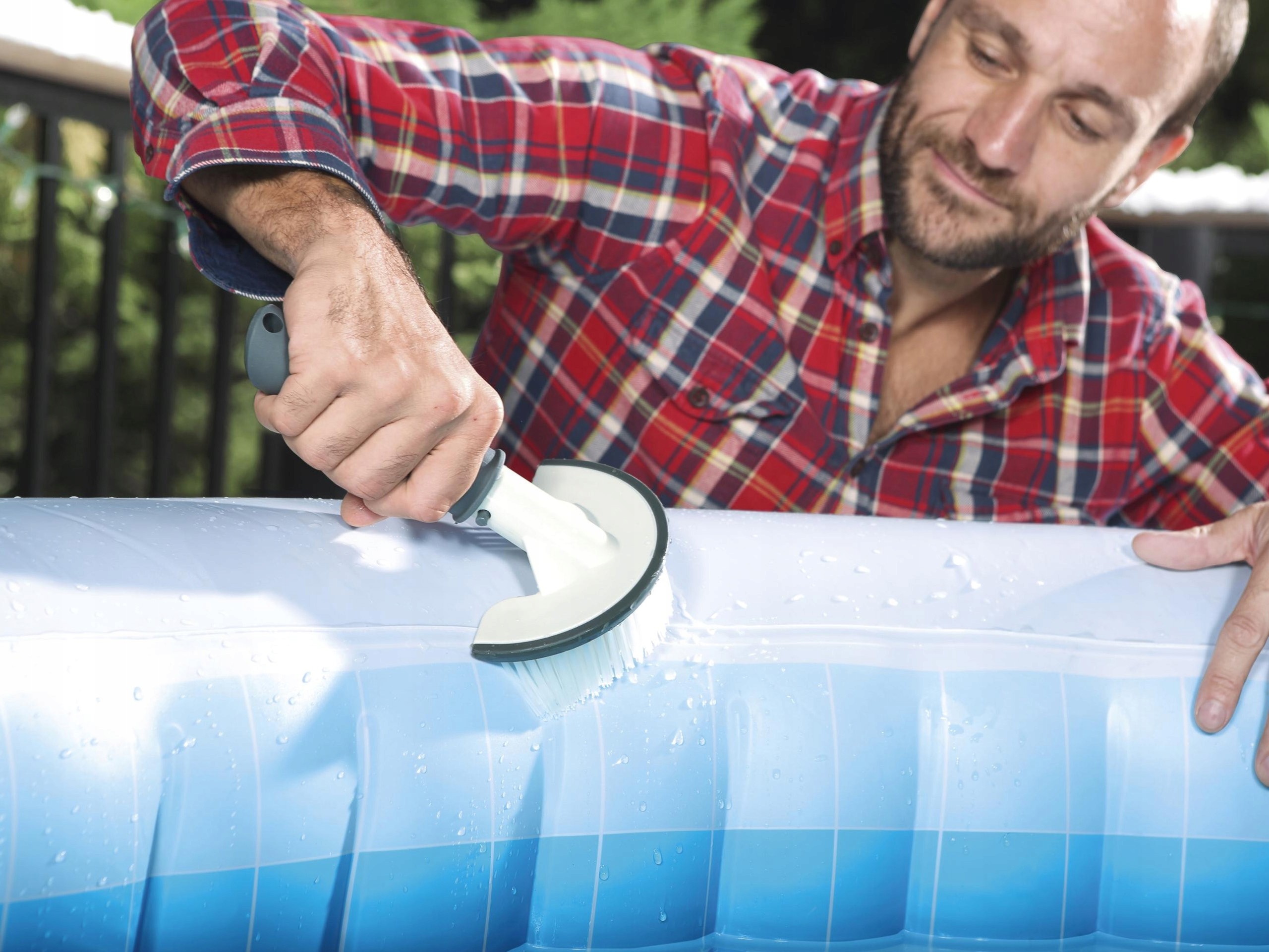 Комплект для очистки Бестс Lay-z-spa состоит из трех частей. щетка с нейлоновым итальянским siem с щитом, защищающим поверхность стен ванны, а также сетчатой sk , , которые помогут собирать грязь, плавающую в воде. Сетчатая крышка защищает поверхность спа -салона, а круглая форма адаптируется к интерьеру и облегчает ловушку примесей