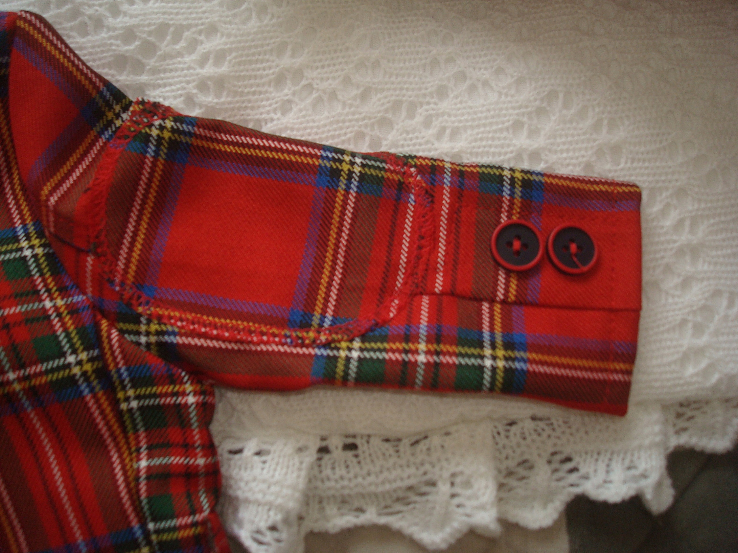 Элегантная в красивой клетчатой куртке, закрепленной кнопками