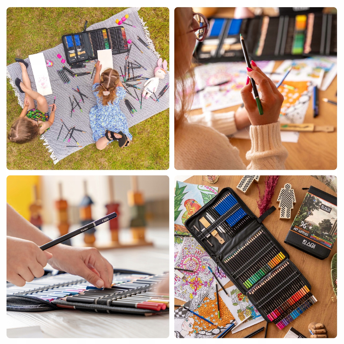 Качественный профессиональный набор для создания рисунков и эскизов. Позволяет использовать различные техники рисования и живописи. Это позволяет развивать свои навыки и разнообразить времяпрепровождение. Подходит для детей и взрослых. Будет полезно студентам, а также любителям рисования, желающим выйти на новый уровень.
