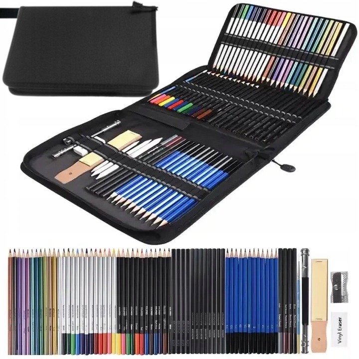 ➡ Что стоит купить наш набор набросков? h1> - включает в себя случай b> - весь набор закрыт в элегантном материале. Его черный цвет будет работать как для женщины, мужчины, девочки и мальчика. благодаря защитному ластике, каждый продукт имеет свое место, поэтому хранение и ношение их легко . Кроме того, он оснащен одним из аксессуаров, таких как карандаши, карандаши, уголь и т. Д., В целом закреплено молнии и имеет подвеску.