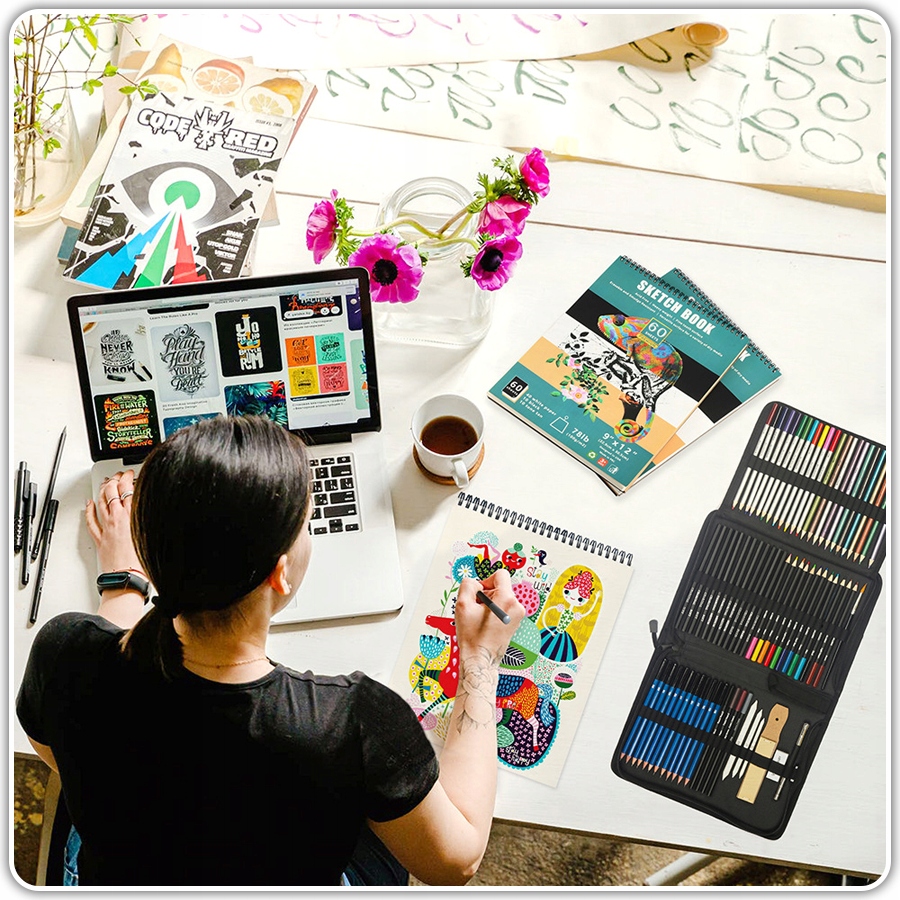 ⭐ Мы предлагаем универсальный 74 набора для рисования — полный художественный набор, содержащий 74 элемента для создания эскизов, рисования, затенения и раскрашивания.