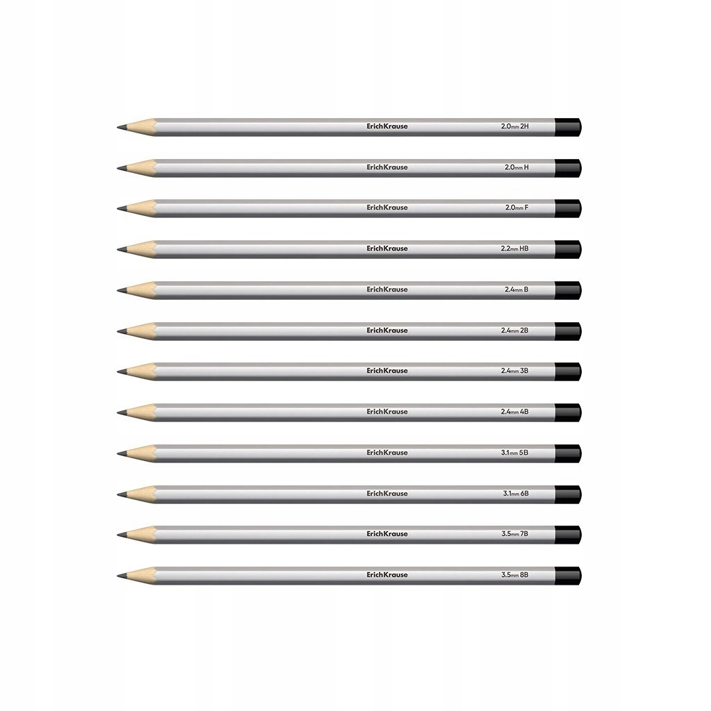 Erich Krause Art – 12 графитных карандашей от 2H до 8B. Массив дерева, клееный графит, устойчивость к смятию. Идеально подходит для эскизов и рисования.