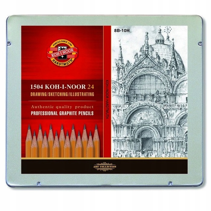 - арт-набор включает 24 карандаша в металлическом футляре от 8В до 10Н.