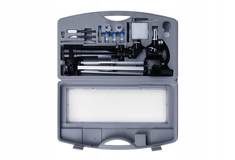 Полный комплект для молодого ученого, содержащий все необходимое для проведения увлекательных наблюдений и экспериментов. В комплект входят: телескоп, учебный микроскоп и набор лабораторных принадлежностей – погрузитесь в мир биологии, химии и астрономии!