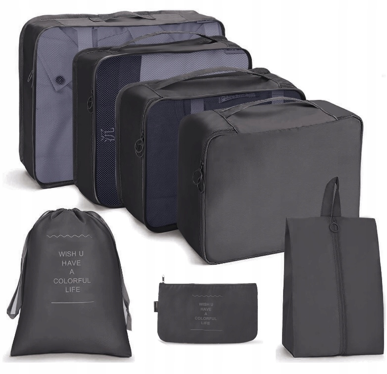 Набор дорожных органайзеров для чемодана и гардероба (7 шт.) черного цвета ⬇️