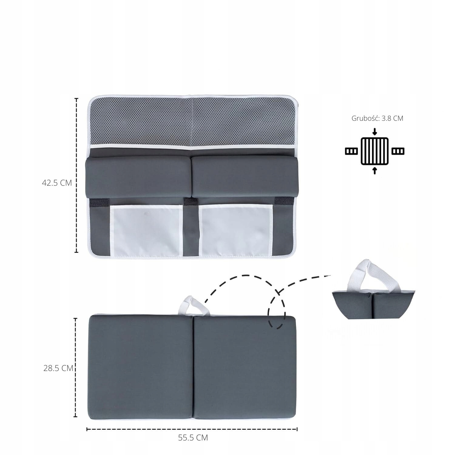 Большие встроенные сетчатые карманы, расположенные в подлокотнике, позволяют иметь под рукой все необходимые аксессуары – от игрушек до косметики.