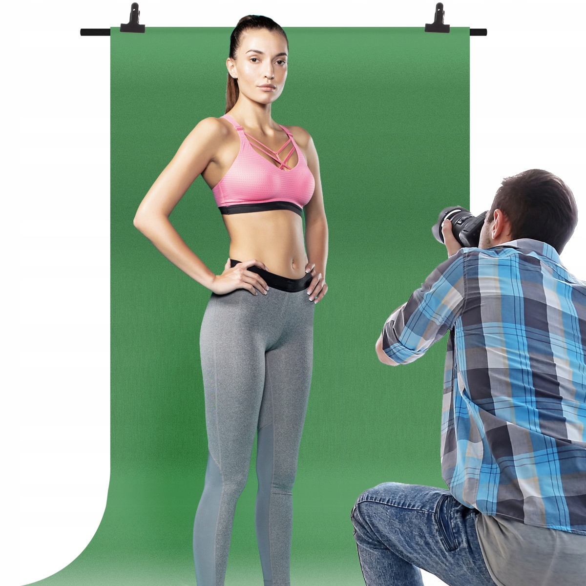 Основой создания домашней фотостудии является рамка для подвешивания фонов с базовым фотографическим фоном. Зеленый цвет фона позволяет фотографировать и снимать в технике GreenScreen (цветовая манипуляция), он обеспечивает отличные условия для фотосъемки с эффектами, портретной фотографии, предметной фотосъемки или создания простой «виртуальной телестудии». Включенная непрерывная подсветка позволяет постоянно просматривать результаты в камере (телефоне) перед тем, как спустить затвор.