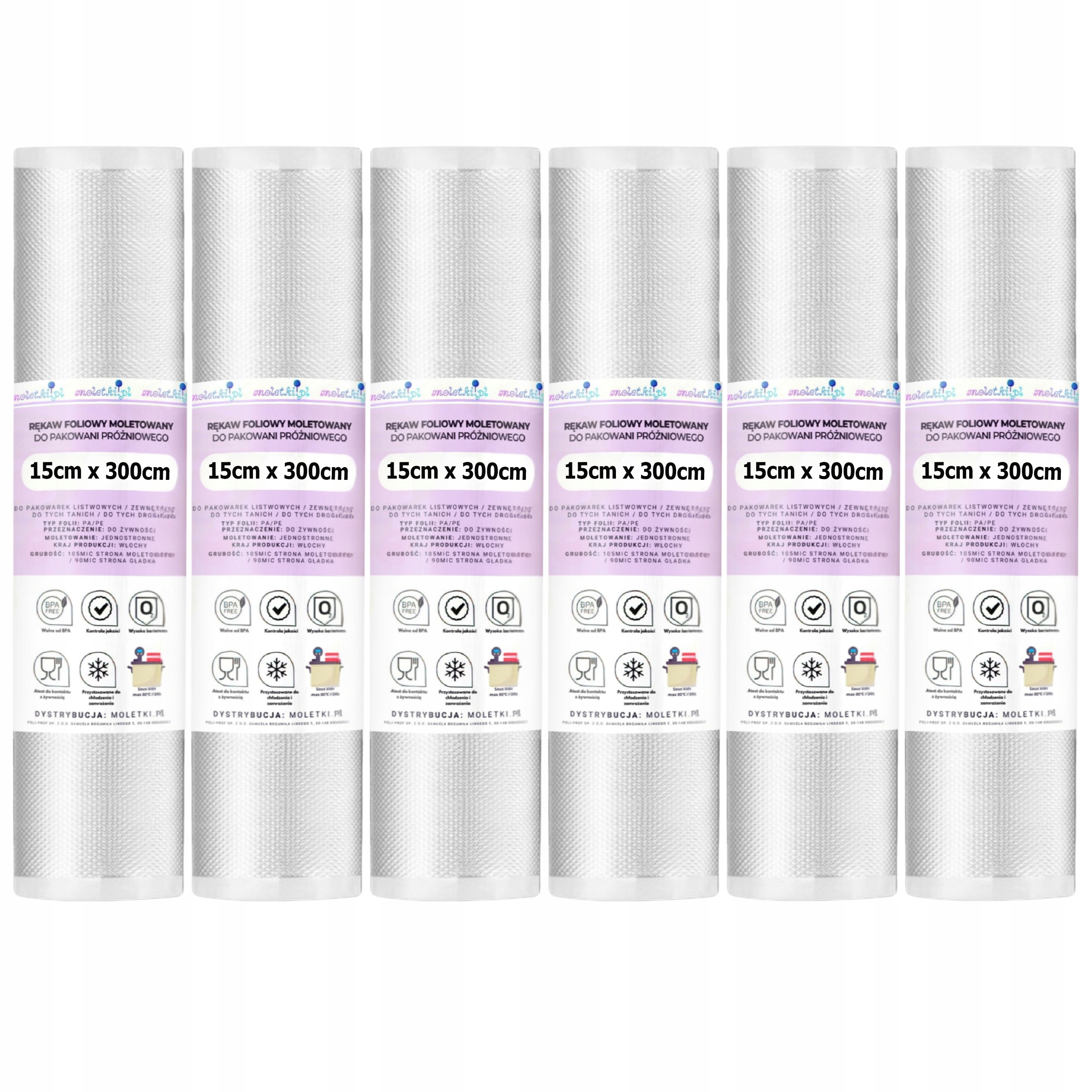 КОМПЛЕКТ Упаковочный рукав ВАКУУМНЫЙ РОЛИК для ЗАПАВНОЙ МАШИНЫ 6 РОЛИКОВ 15х300см