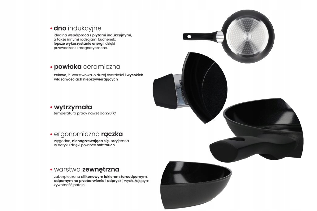 Патент совместимый с всеми типами плитов, в том числе с печами nductional. Дополнительным преимуществом является его небольшой Вес , что делает еще длинную и интенсивную работу с сосудом, не вызывает усталости от руки. Руководство из не -конструктивного тепла материала PP, удобно лежит в руке, и благодаря использованию покрытия Soft Touch дополнительно приятно прикосновенно и обеспечивает определенную сцепление. Снаружи кастрюль была закреплена силиконовым лаком тепло -резистентный , устойчивый к обесцвечиванию и осколкам.