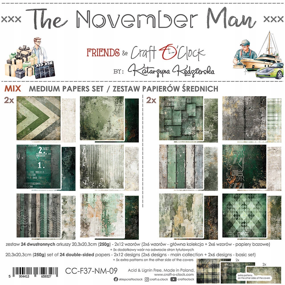 Набор бумаги для скрапбукинга 20х20 Крафт-часы - Ноябрьский Человек микс