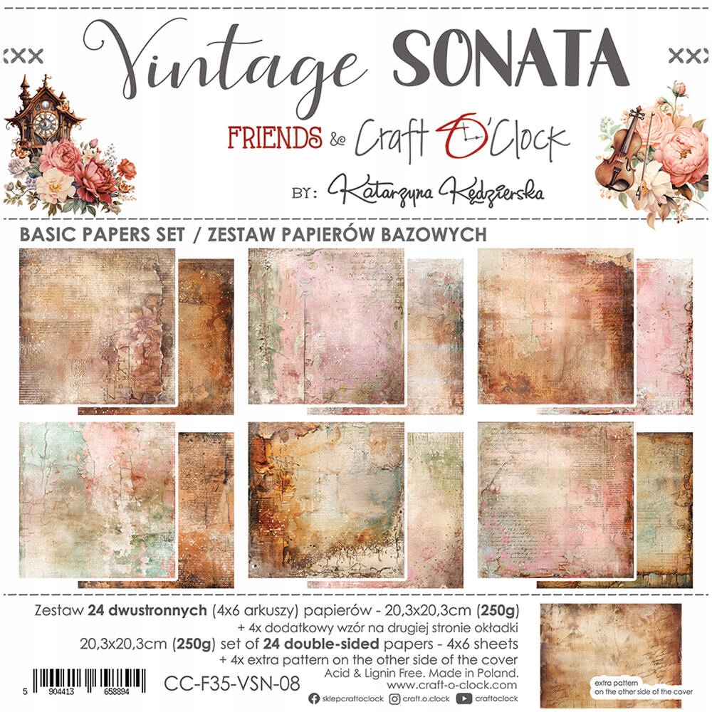 НАБОР БУМАГИ для скрапбукинга 20x20 Коллекция Vintage Sonata - BASIC