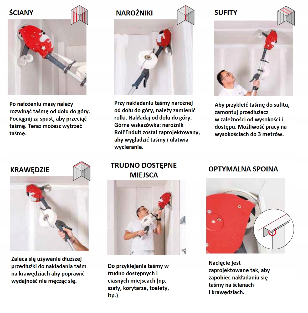 В традиционном строительном проекте со стенами и потолками использование Roll'Enduit® и RollCut'® при наложении шовной ленты позволяет повысить эффективность и сэкономить 50% рабочего времени.