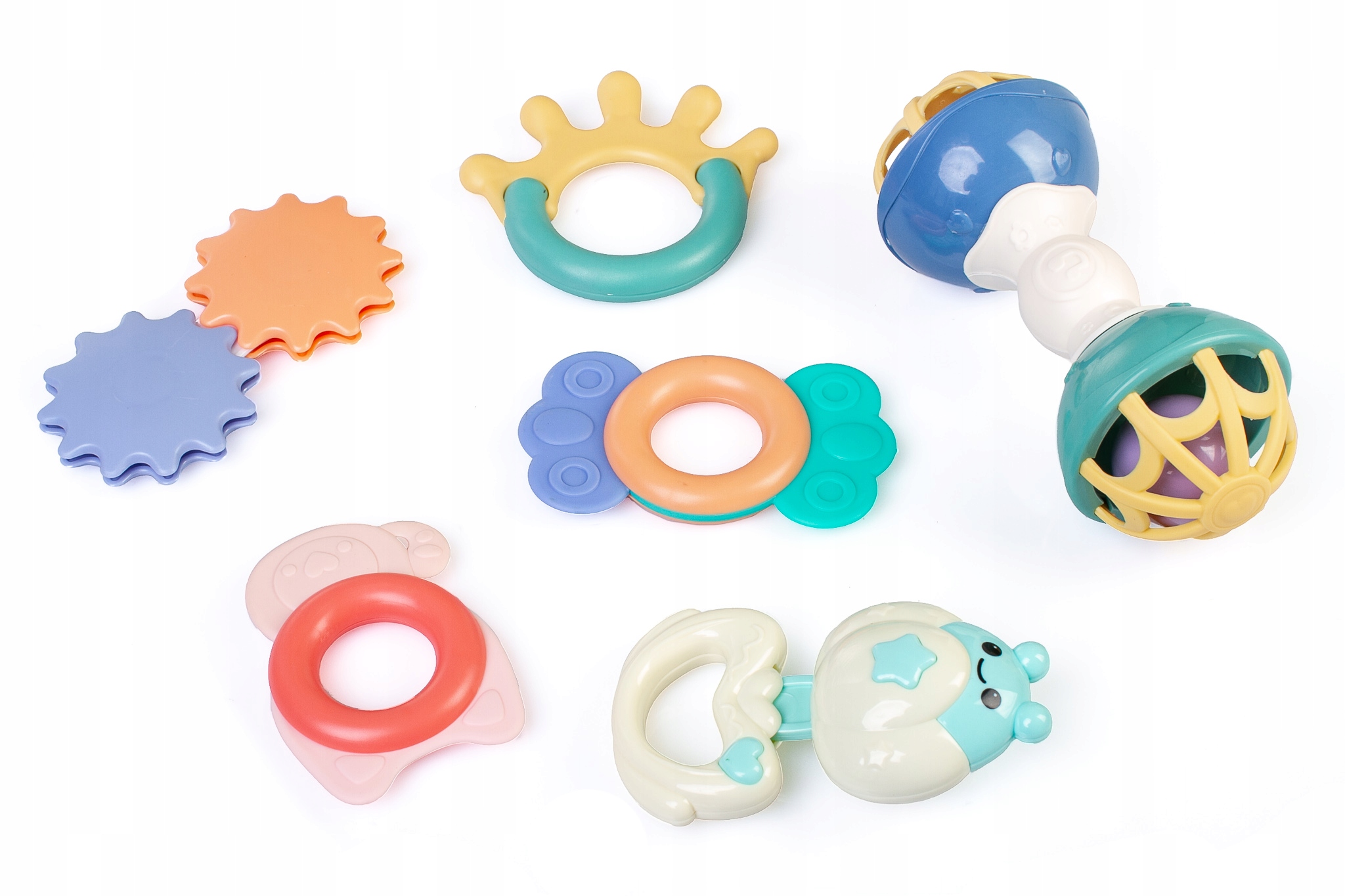 Набор из 6 погремушек и прорезывателей порадует каждого малыша и станет прекрасным подарком для малышей. Прорезыватели помогают малышу во время прорезывания зубов. Они эффективно массируют десны и приносят облегчение.