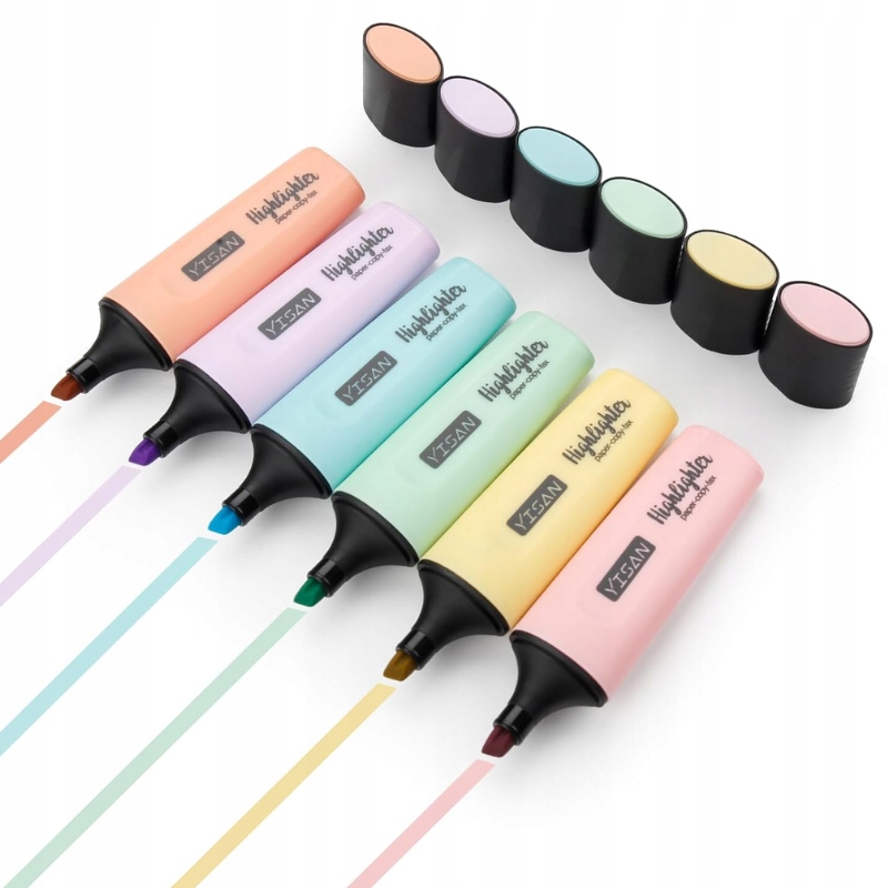 Хайлайтеры в наборе из 6 штук — элегантная альтернатива классическим фломастерам. Доступные в модных пастельных тонах, они являются идеальным инструментом для выделения важных фрагментов в текстах, книгах, заметках или распечатках. Пастельная палитра обеспечивает тонкий эффект и идеально подходит для работы в офисе, школе или во время учебы дома.