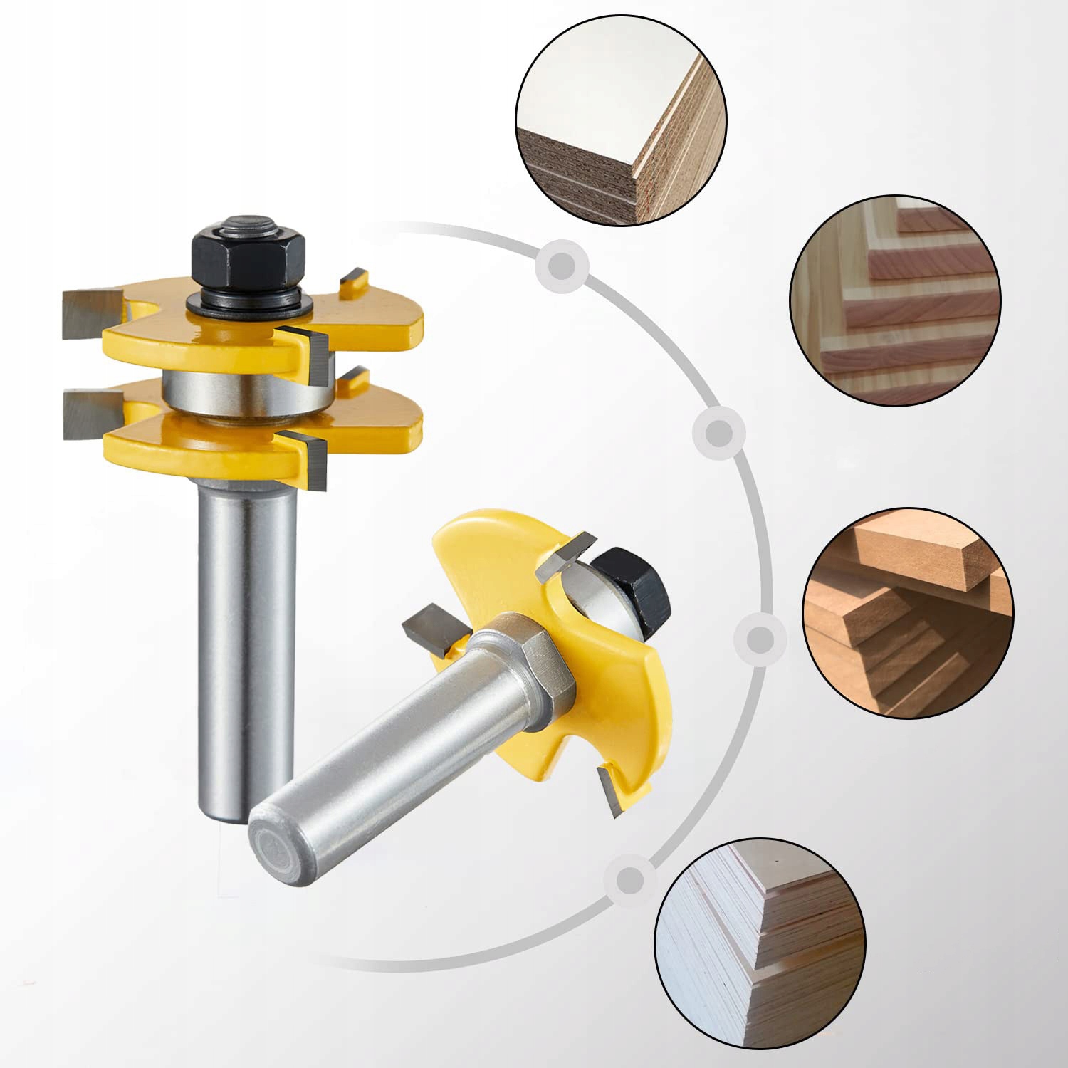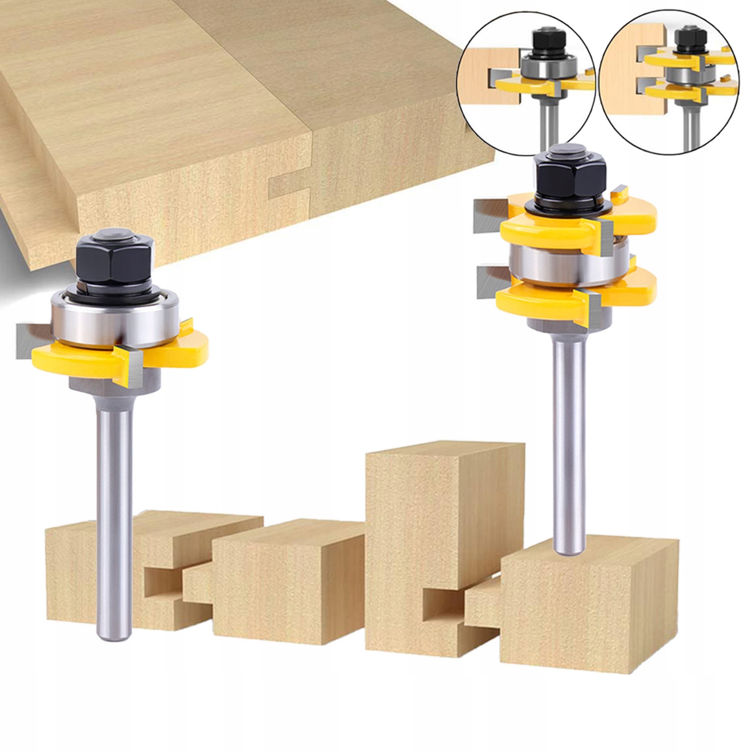 Набор фрез с пазогребневым хвостовиком 8 мм – 2 шт. Уступные фрезы 3/4" с глубиной фрезерования 1/2" - Т-образная фреза с 3 зубьями для деревообрабатывающих инструментов.