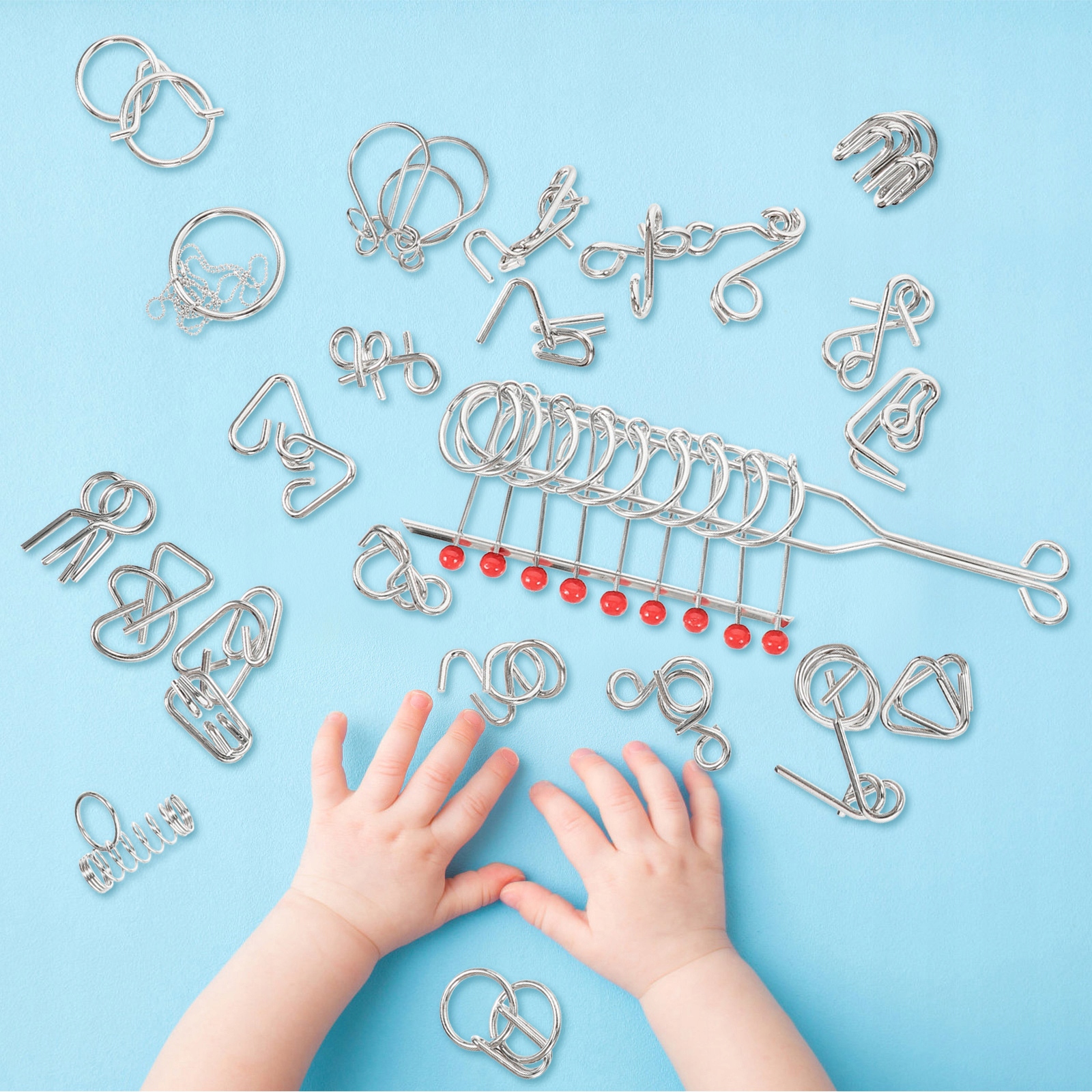 Бросьте вызов своим интеллектуальным возможностям и наслаждайтесь решением головоломок! Этот набор интеллектуальных пазлов из девяти звеньев включает в себя 25 различных взаимосвязанных частей головоломки, подходящих как для детей, так и для взрослых. Каждая головоломка уникальна и требует терпения и аналитического мышления для решения. Это идеальный набор обучающих инструментов или игрушек для снятия стресса.