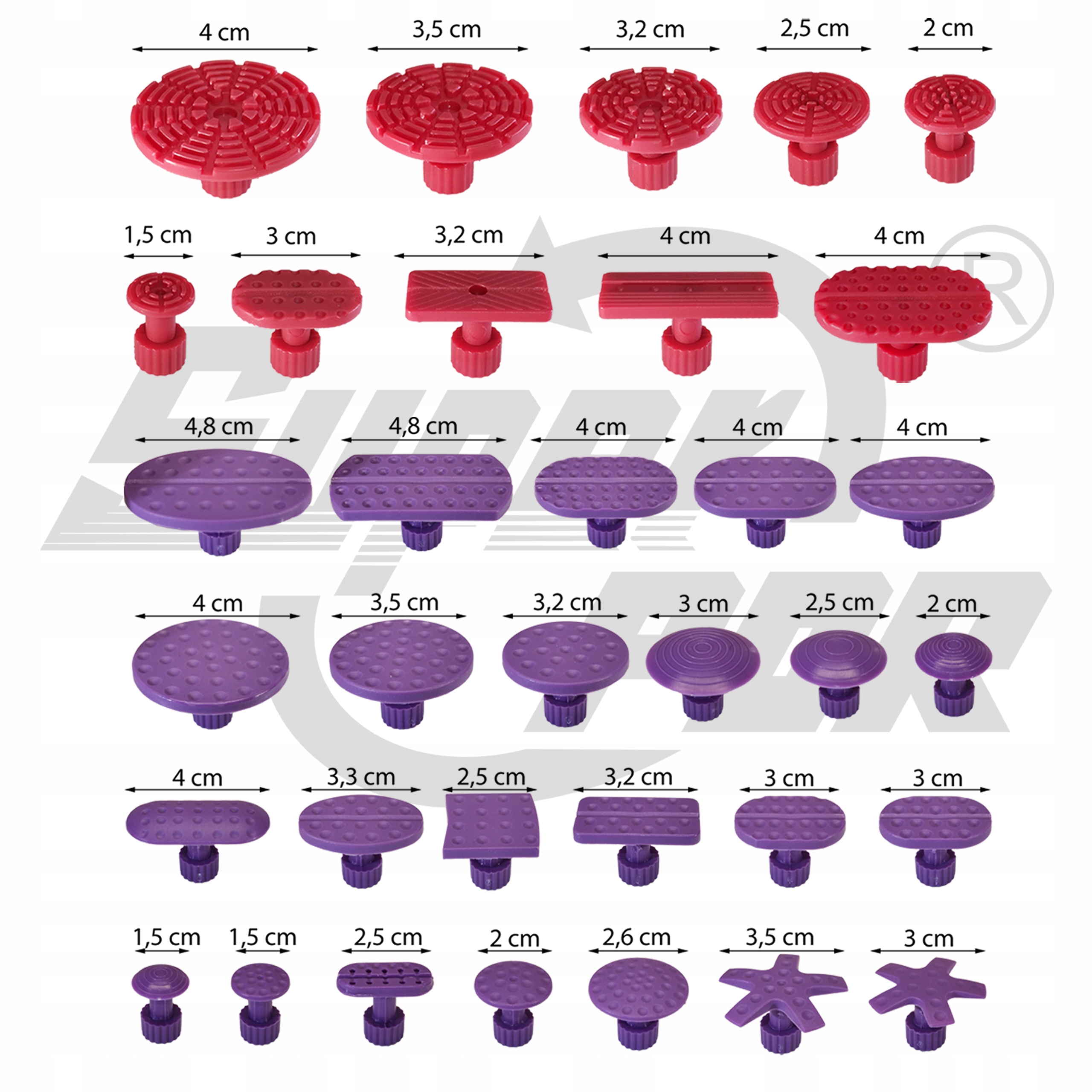 Инструменты используются для удаления вмятин на кузове автомобиля и других поверхностях из листового металла, благодаря чему можно легко устранить большую часть повреждений, вызванных : град, повреждение парковки, вандализм и т. д.
