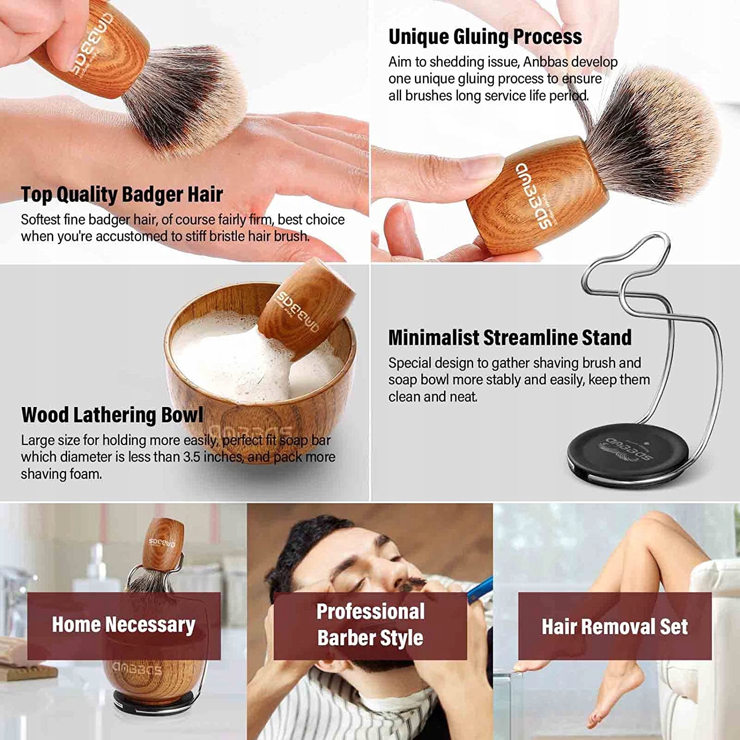 - аксессуары: 100 г высококачественного мыла для бритья от сандалового дерева для бритья, подходящие для всех типов кожи, включая чувствительную кожу; Стенд для бритья: приведите кисть для бритья, чтобы удержать волосы щетки надолго.