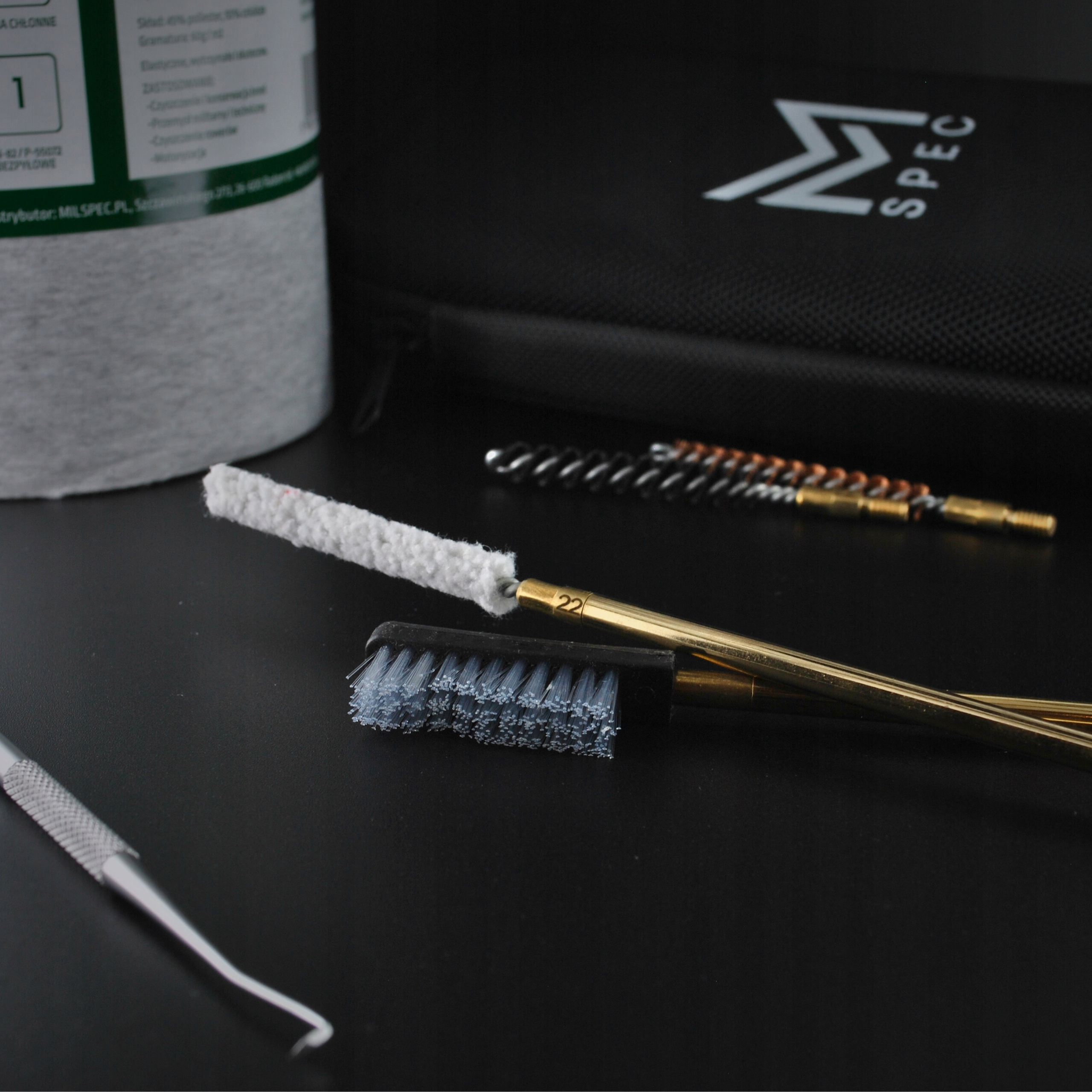 спроектировано польской компанией MSPEC Professional набор чистящего оружия .22LR закрыто в сплошном закрытом чехле. стрельба, в лесу или дома.