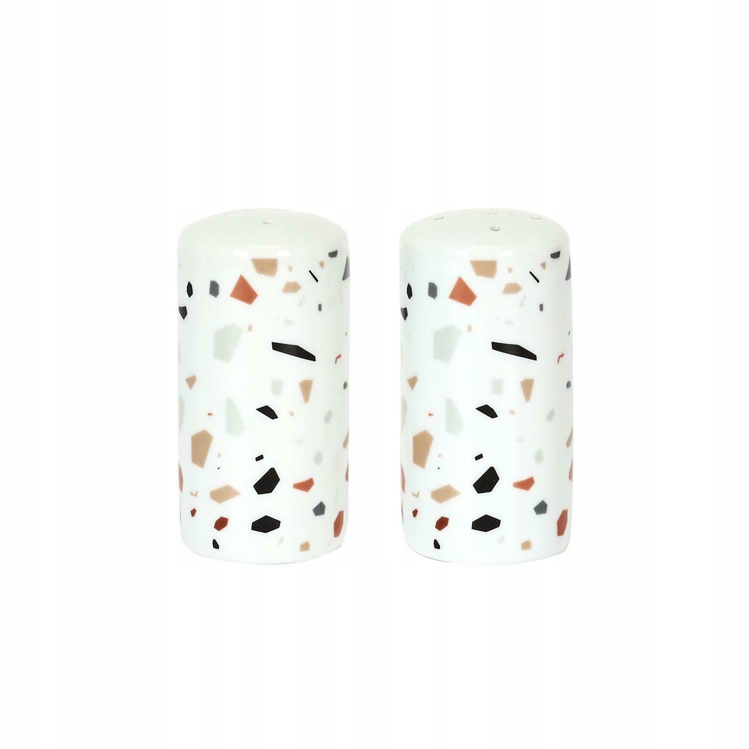 Позаботьтесь о том, чтобы даже предметы повседневного обихода в вашей квартире имели продуманный дизайн. Небольшое дополнение в виде солонки и перечницы с узором терраццо может изменить расположение обеденного стола или кухонной стойки. Этот горячий тренд в виде терраццо представляет собой изысканное сочетание цветов и форм, которое делает интерьер более уютным и воспринимается позитивно. Набор контейнеров для соли и перца состоит из белых фарфоровых блюд с пастельными акцентами. Помимо них в серию также входят тарелки и чашки, которые вместе создают очаровательную композицию.