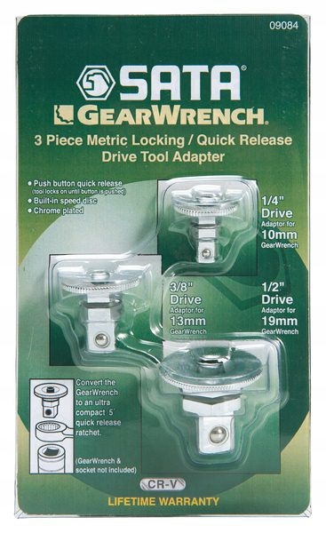 Набор из 3 быстросъемных адаптеров для Ключи с храповым механизмом 1/4", 1/2", 3/8" Разнообразие продукции SATA позволяет использовать ее в самых разных областях: от автосервисов до ремонтных и строительных работ. В инструментах SATA используется ряд новейших запатентованных решений. Разработано компанией DANAHER Tool GROUP. В процессе производства инструменты подвергаются очень тщательному контролю качества, что подтверждается соответствием стандарту ISO 9002. Все инструменты SATA соответствуют американским стандартам ANSI и немецким стандартам DIN и изготовлены из хромванадиевой стали, закалены и отпущены. и термообработанной, а также хромомолибденовой стали, из которой изготавливаются ударные головки.
