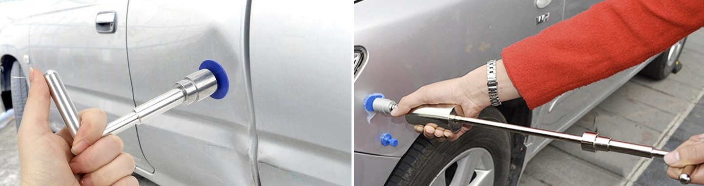 Набор для удаления вмятин используется для удаления вмятин, вызванных, в частности: в результате мелких столкновений, повреждений парковок, вандализма и даже града. Метод удаления вмятин PDR (Paintless Dent Repair) позволяет удалить вмятины с металлического кузова без необходимости его последующей покраски. Это означает, что она подойдет не только для автомобилей, но и для другого оборудования: холодильников, стиральных машин, дверей и подобных поверхностей из листового металла.