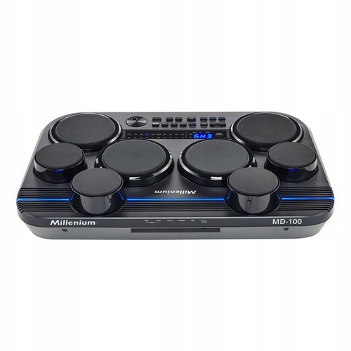 Мобильная ударная установка Millenium MD-100 предлагает непревзойденное качество звука и универсальность в одном компактном устройстве. В комплект входят 8 динамических барабанных пэдов с возможностью выбора из 665 различных звуков перкуссии. Вы можете использовать готовые наборы ударных - их 80, или создать свои собственные, до 10 индивидуальных пользовательских наборов.