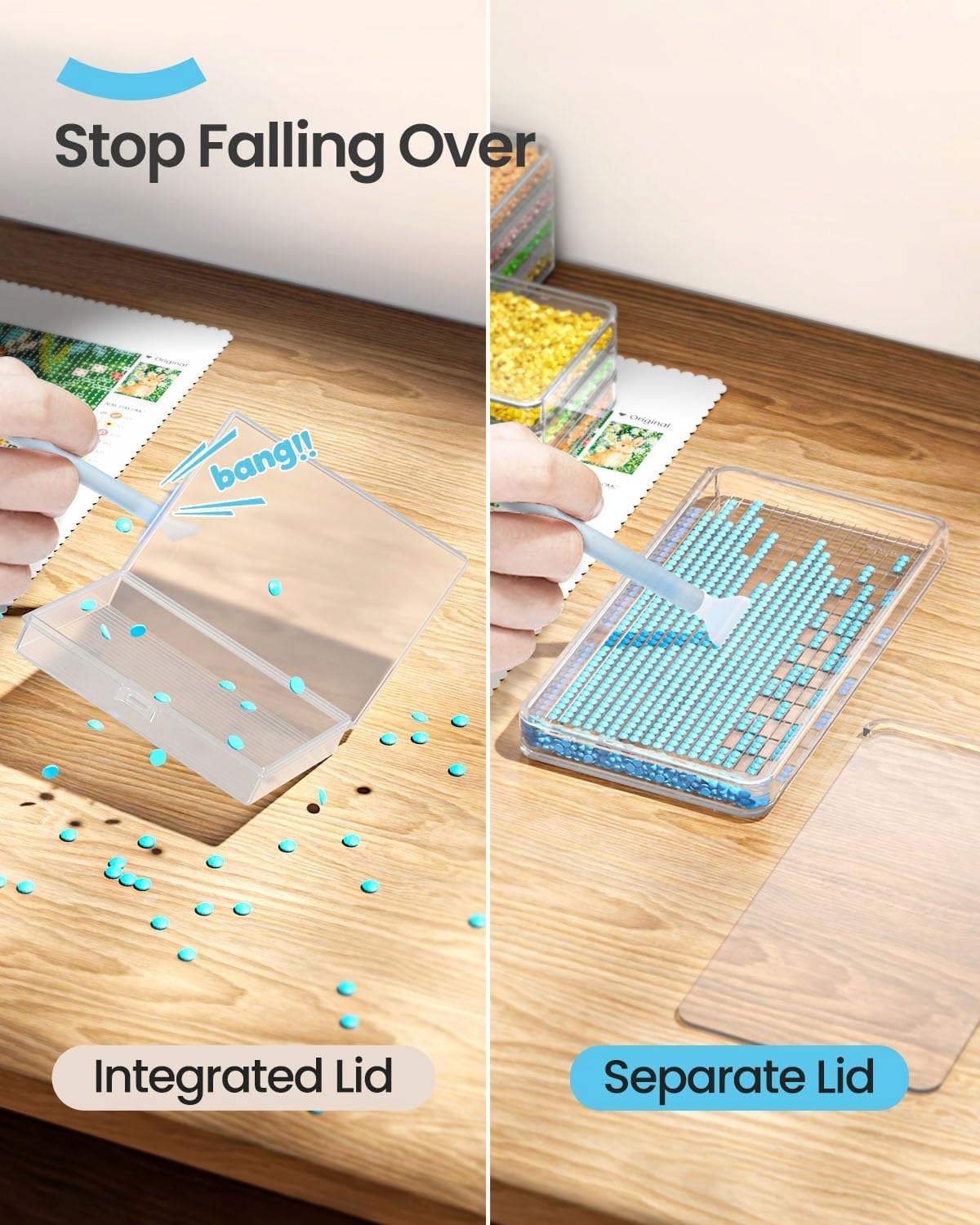 ARTDOT Набор лотков для алмазной живописи для взрослых, 60 предметов, с крышками, штабелируемые аксессуары и инструменты для алмазной живописи 2-в-1