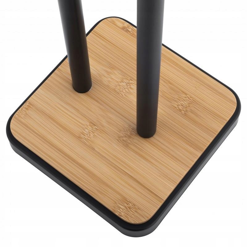 Элегантная подставка для запасной туалетной бумаги с держателем для дополнительного рулона. Подставка изготовлена из высококачественной стали с порошковым покрытием. Основание изготовлено из натурального бамбукового дерева. Широкое основание и пластиковые накладки обеспечивают превосходную устойчивость.
