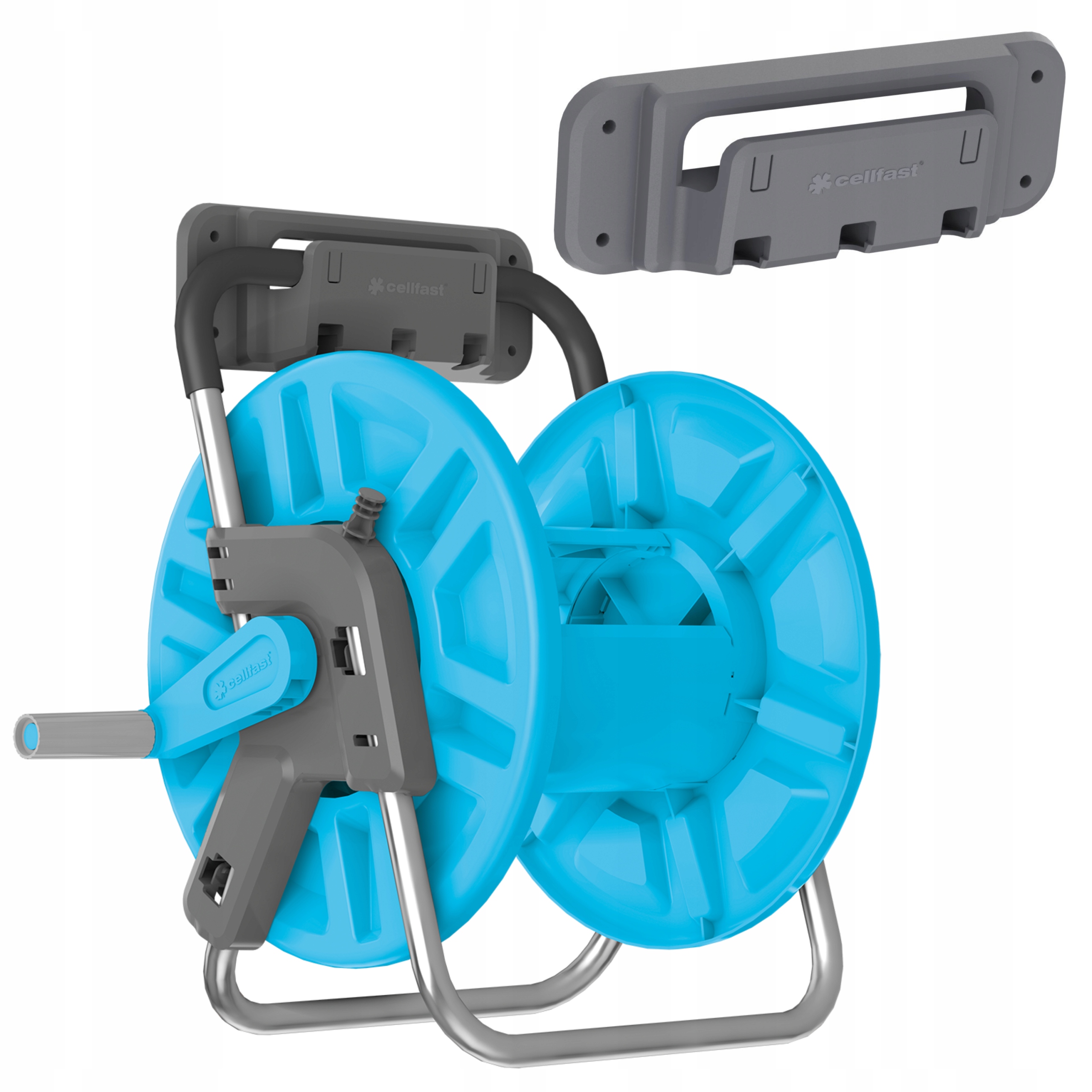 Комплект ALUPLUS с подвеской для тележек и подставок и подставкой для шланга 1/2" 45М CELLFAST 55-151 - идеальное решение для любителей сада, которые хотят обеспечить удобное и легкое хранение шланга и простоту разбрасывания. его на лужайке или в другом месте в саду.саду.Благодаря алюминиевой конструкции подставка легкая и удобна для переноски, а ее сборка очень проста и не требует использования инструментов.Все элементы подставки крепятся с помощью защелка, позволяющая быстро и легко складывать и раскладывать подставку.