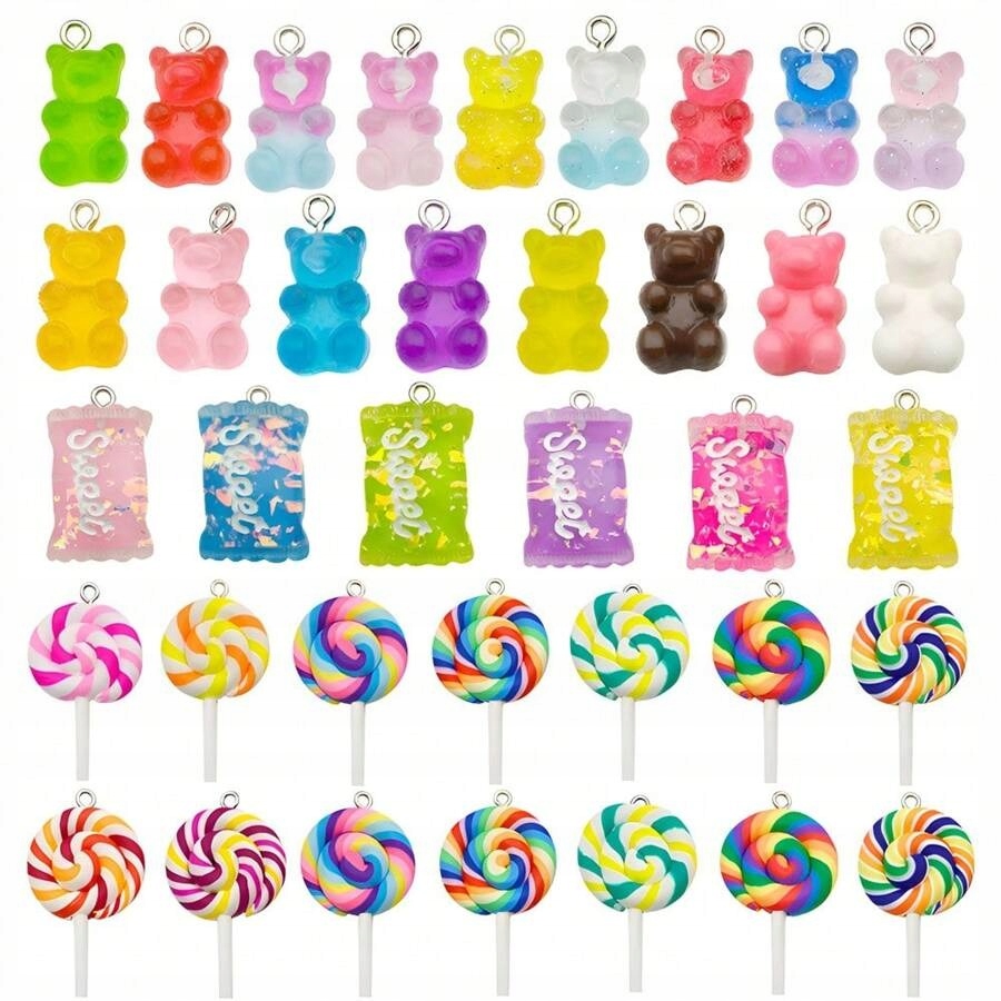 32 шт. Разноцветные подвески-конфеты - сладкие мармеладные мишки и леденцы из полимерной смолы