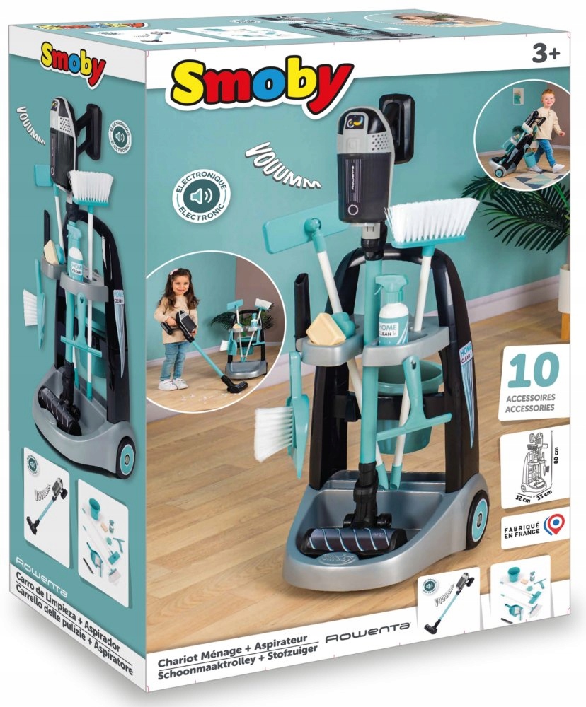 Smoby - Тележка для уборки с пылесосом Rowenta со звуком + 10 аксессуаров 330319