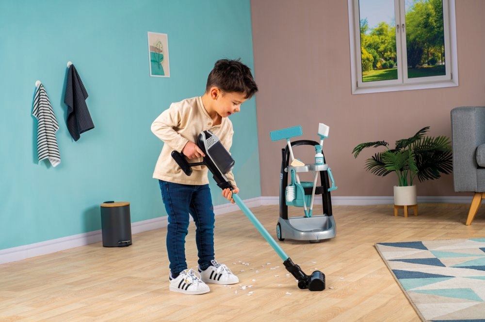 Тележка для уборки с пылесосом Rowenta – красивый набор, который понравится детям, которые с увлечением смотрят на труд и занятия взрослых. С игрушками для уборки Smoby дошкольники смогут помогать по дому и весело проводить время!
