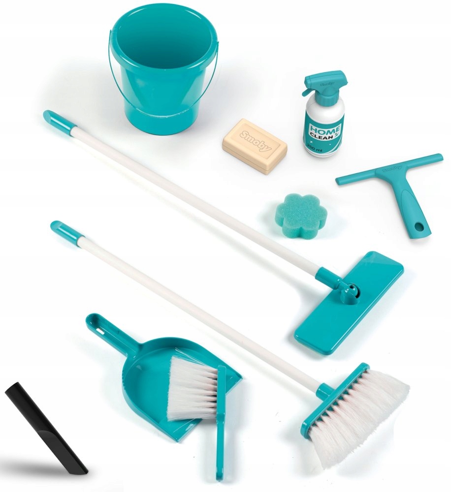 В комплект также входит веник, швабра и даже средство для мытья окон! Игра в уборку – отличная тренировка моторики ребенка. В то же время он учит малыша тому, что совместная работа и уборка важны и приносят массу удовольствия.