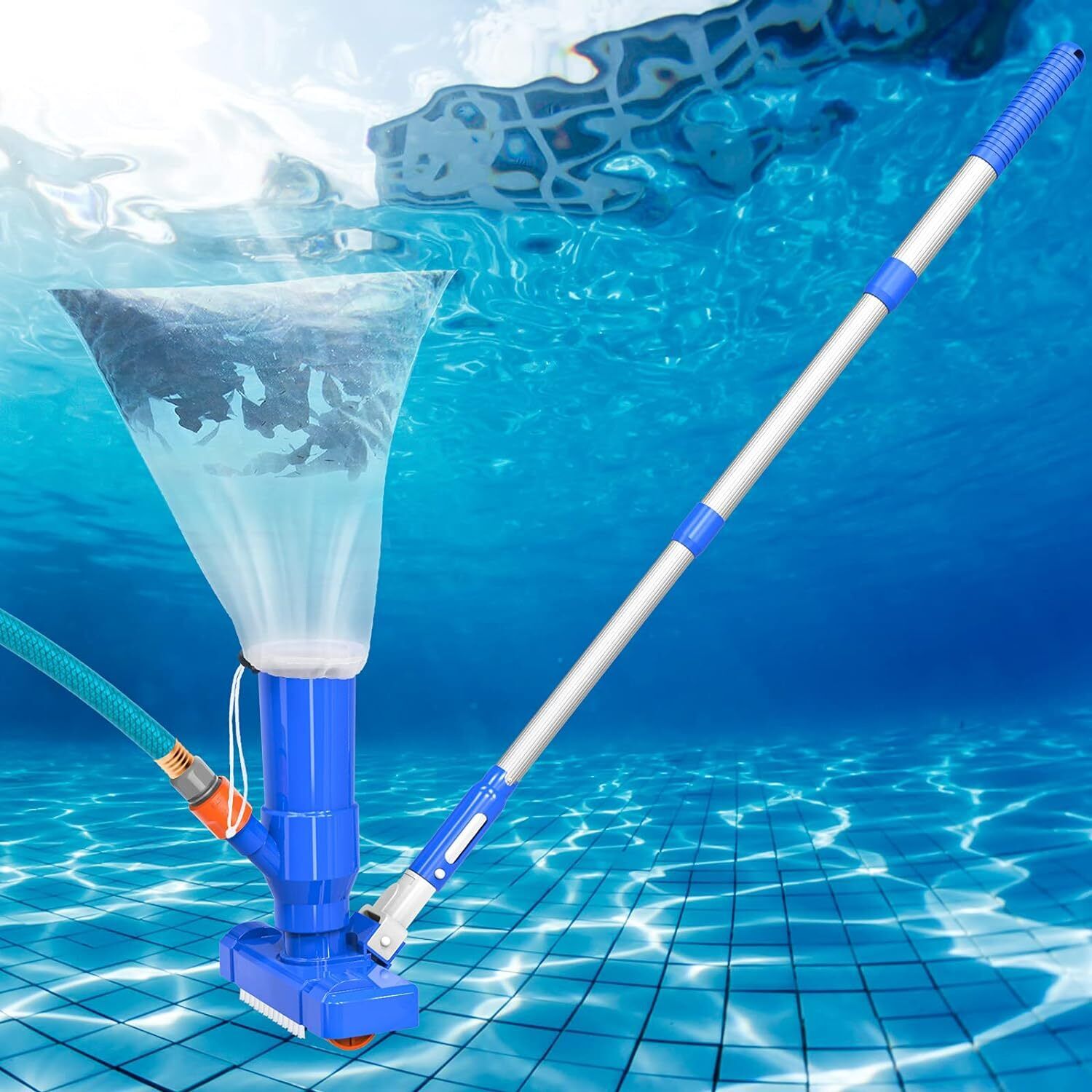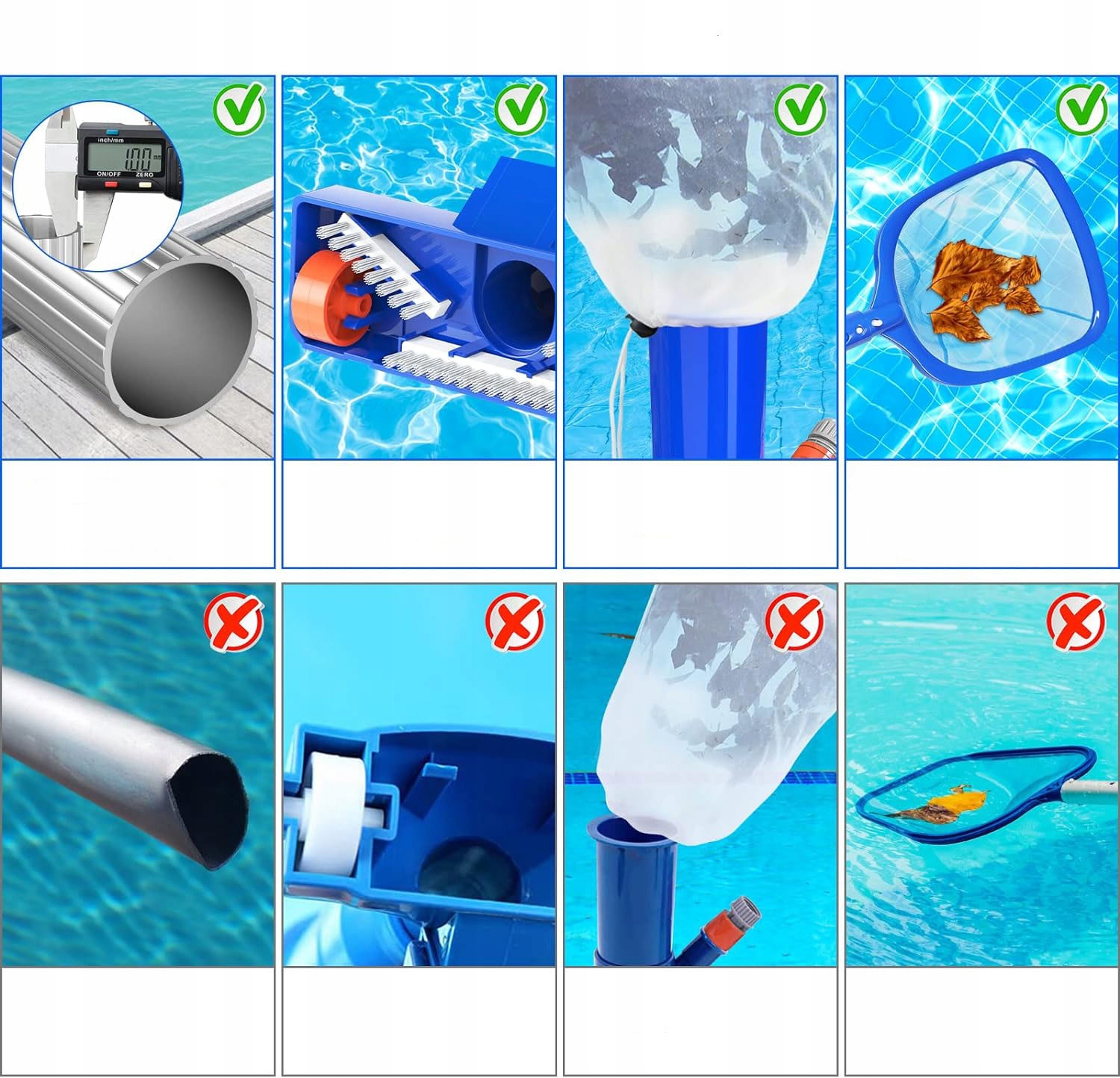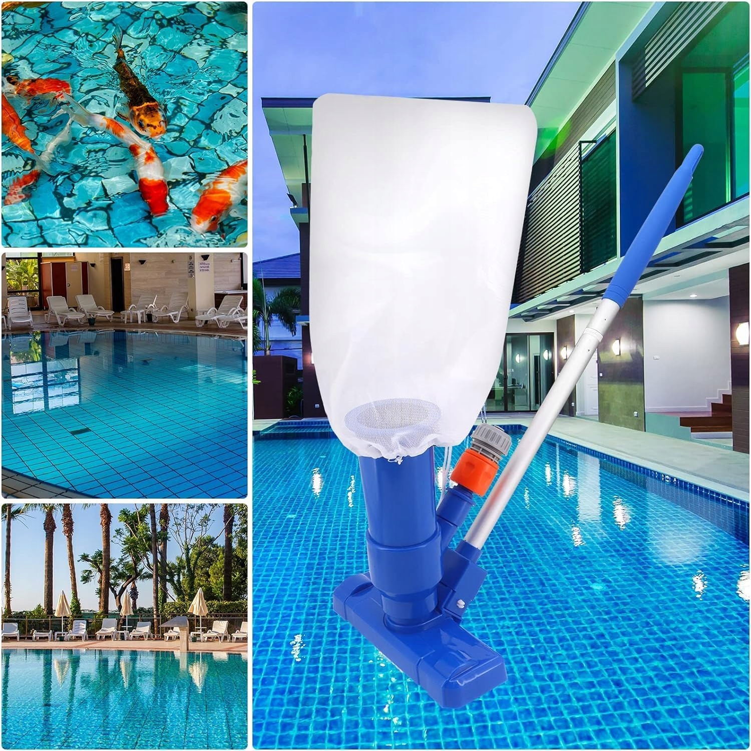 💧 Эффективная очистка: наш бассейн для очистки пола оснащен тремя кистями на дне для очистки под многими углами, с двумя роликами, которые помогают сохранить физическую прочность при перемещении пылесоса. Телескопическая палочка ввинчивается в разъем, благодаря которому она безопасно установлена, и вам не нужно бояться падения. Сетчатая сумка оснащена гибкой струной, которая может быть более крепко прикреплена к уборщику вакуумного уборщика бассейна.