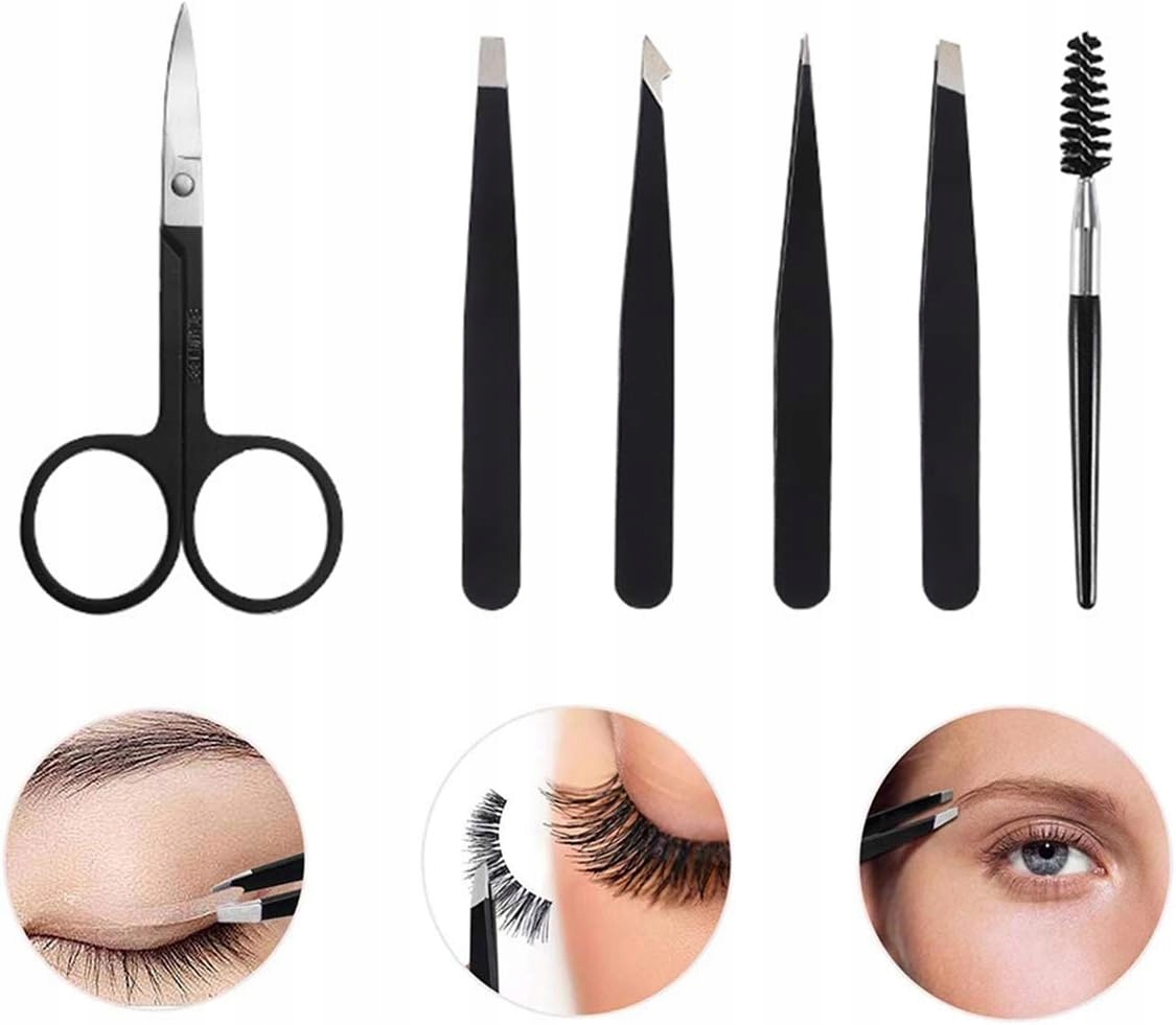 Включает в себя 4 различных прецизионных пинцета для бровей, 1 ножницы для бровей и 1 кисть для бровей. Этот набор — незаменимый инструмент в ежедневном уходе — как дома, так и в салоне красоты.