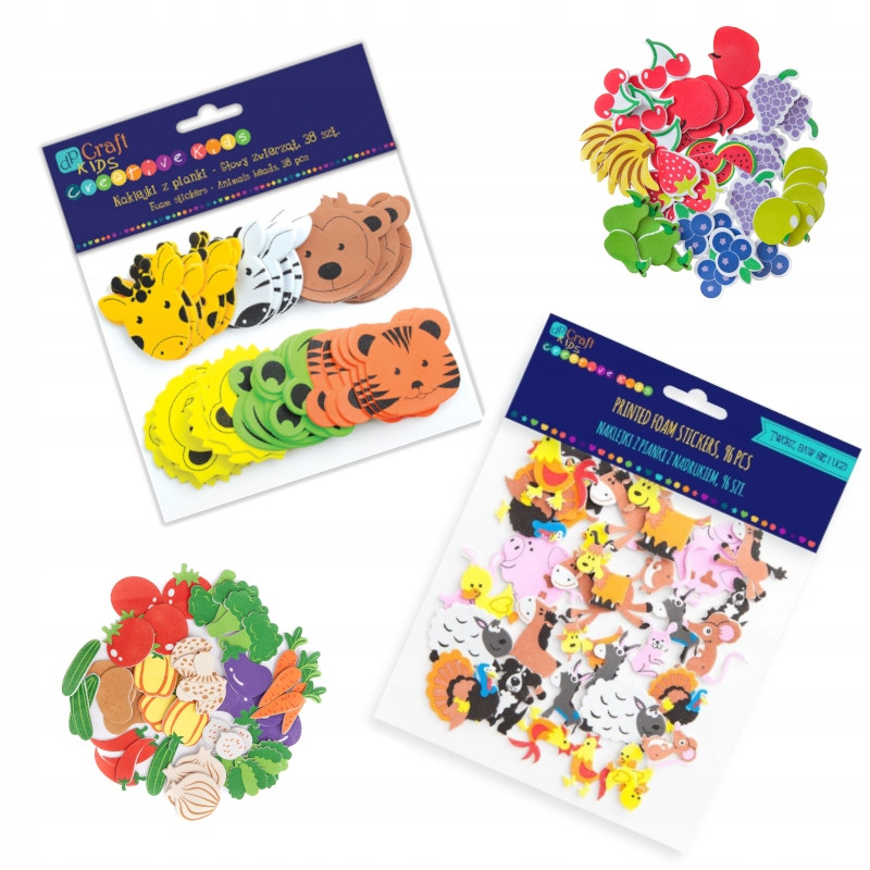 НАБОР ПЕННЫХ НАКЛЕЙКОВ ЗВЕРИ 38шт. ПРОЧНЫЕ
