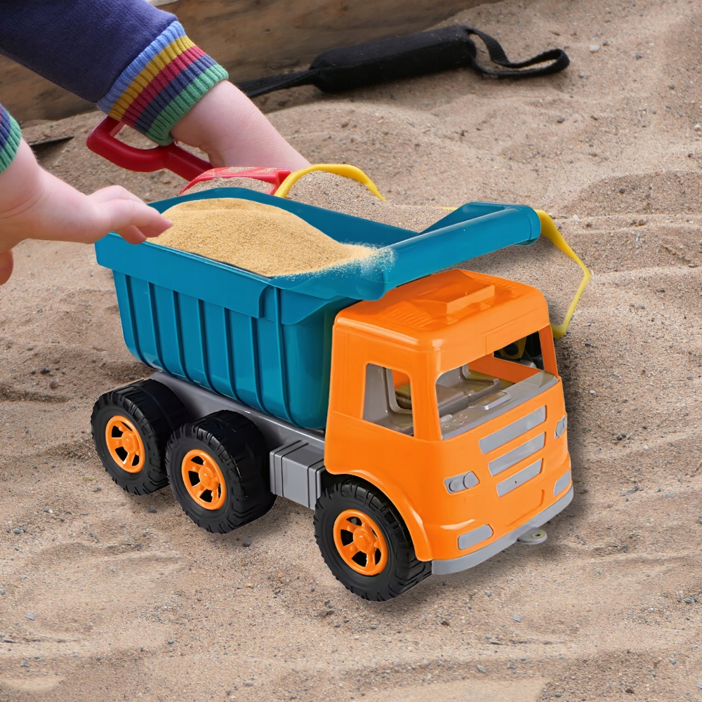 В набор входит самосвал и 6 аксессуаров (2 формы, лопата, грабли, лейка, ведро), которые позволят создавать различные формы и конструкции из песка.