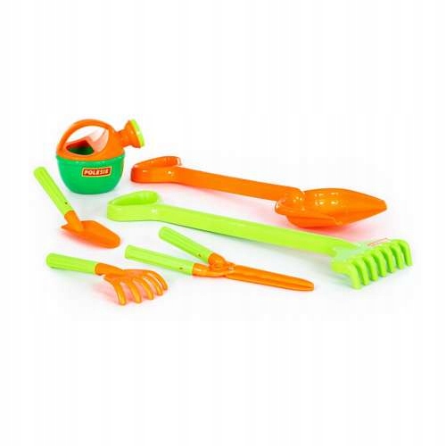 В комплект входят: большая лопата (50 см), большие грабли (50 см), лопата-лопатка, маленькие грабли, секатор, лейка. р>