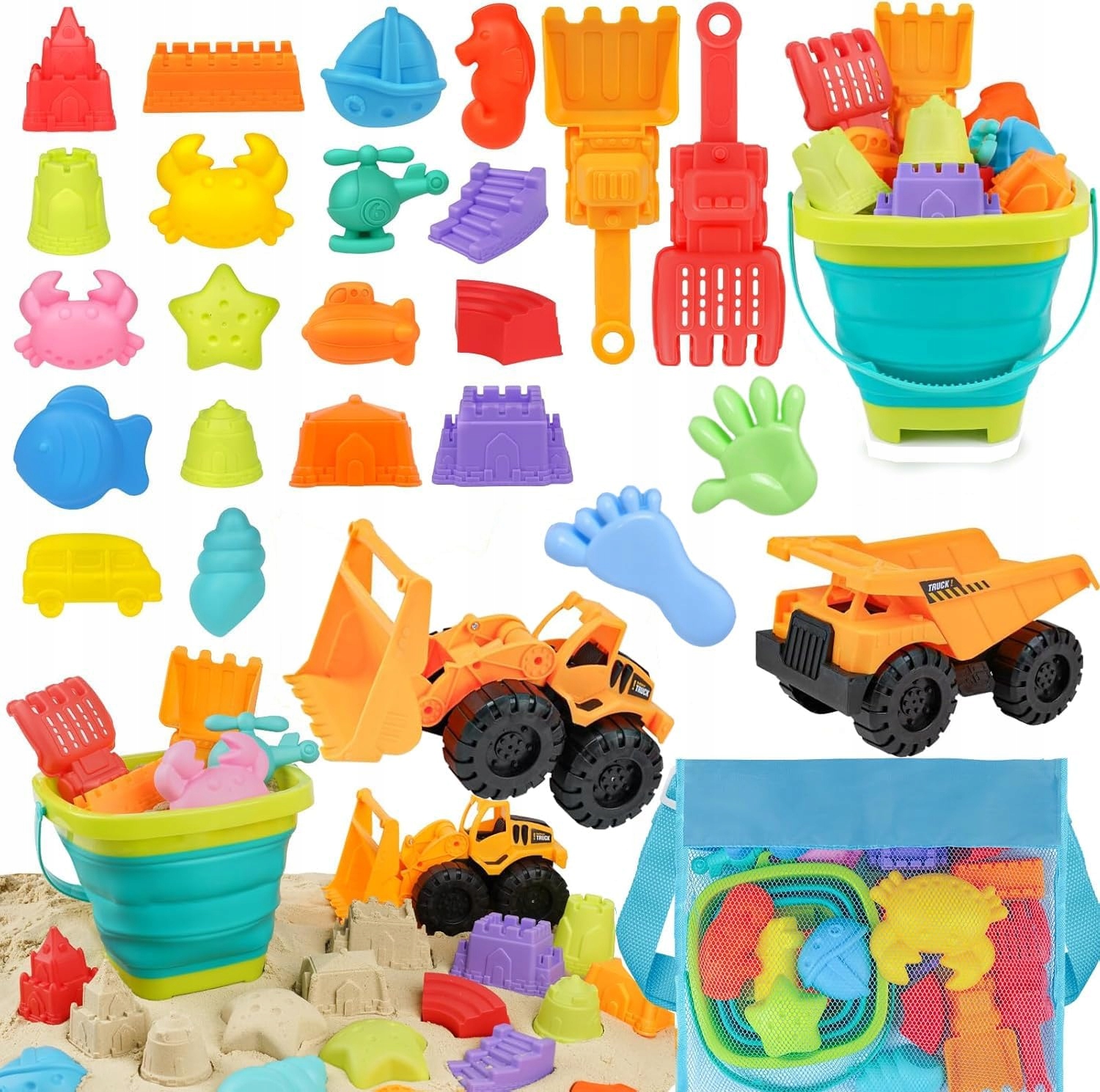Игрушки для песка, пляжные игрушки для мальчиков со складным ведром, детская песочница-экскаватор, 26 шт. Формы для песка, лопатки для песка, игрушки для путешествий из песка от 3 лет (аксессуары случайных цветов)
