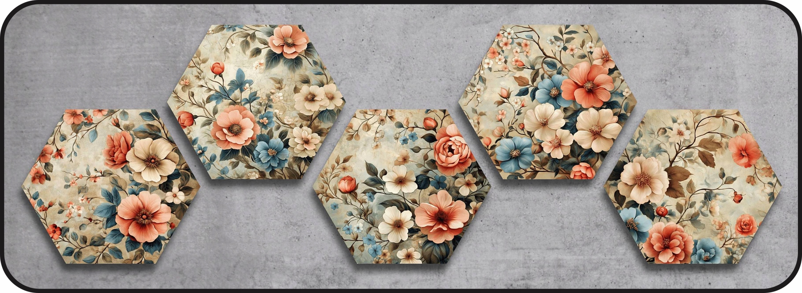 - Благодаря шестигранной форме, наши украшения идеально совпадают. Вы можете свободно объединить различные наборы из предложения и создавать большие эффективные композиции стен.