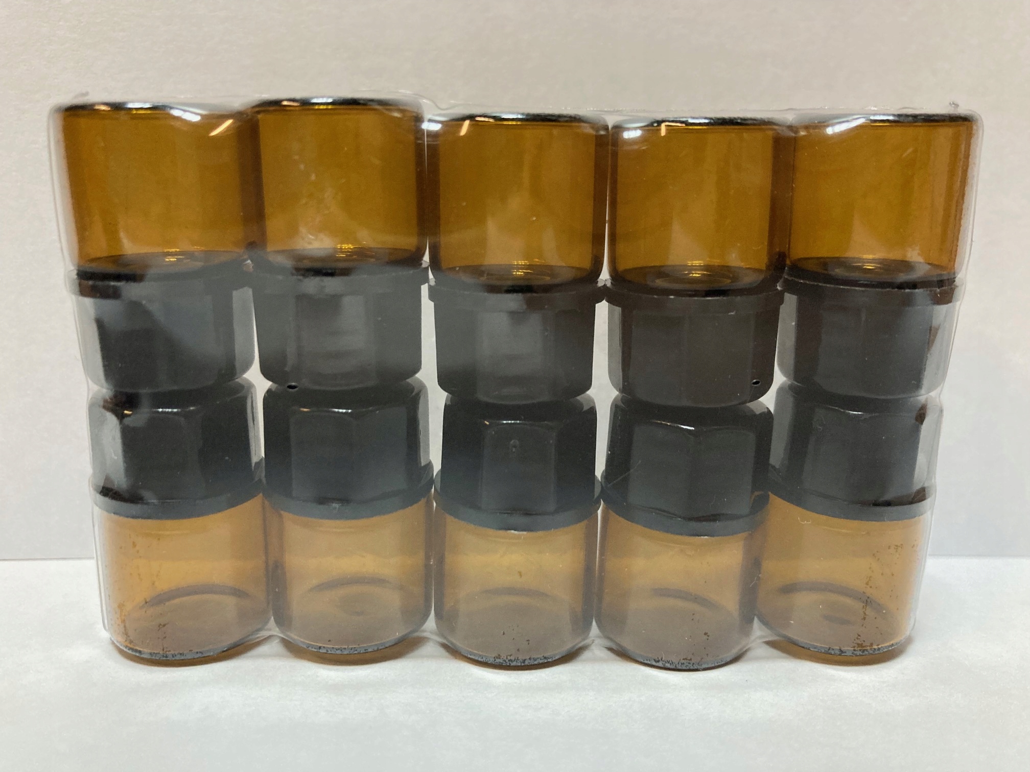 НАБОР КОРИЧНЕВЫХ СТЕКЛЯННЫХ ФЛАКОН 10 Х 1 МЛ С КРЫШКОЙ И КРЫШКОЙ ДЛЯ ЭФИРНЫХ МАСЕЛ